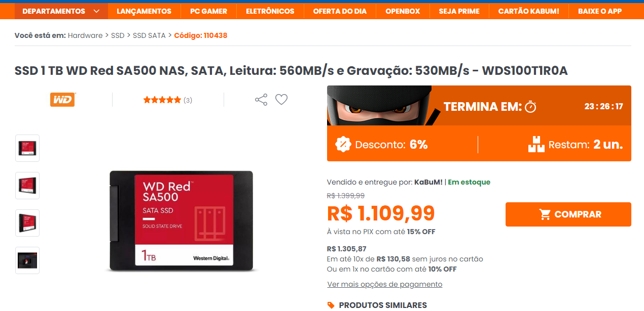 Estranhamente, logo após alguns dias da compra deste SSD, o anúncio saiu do ar… Nossa ,que estranho não é??