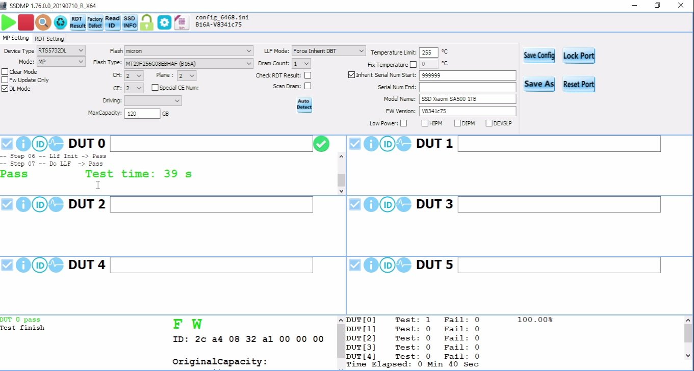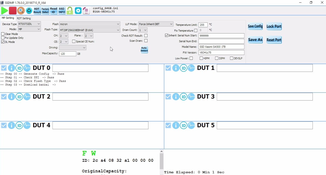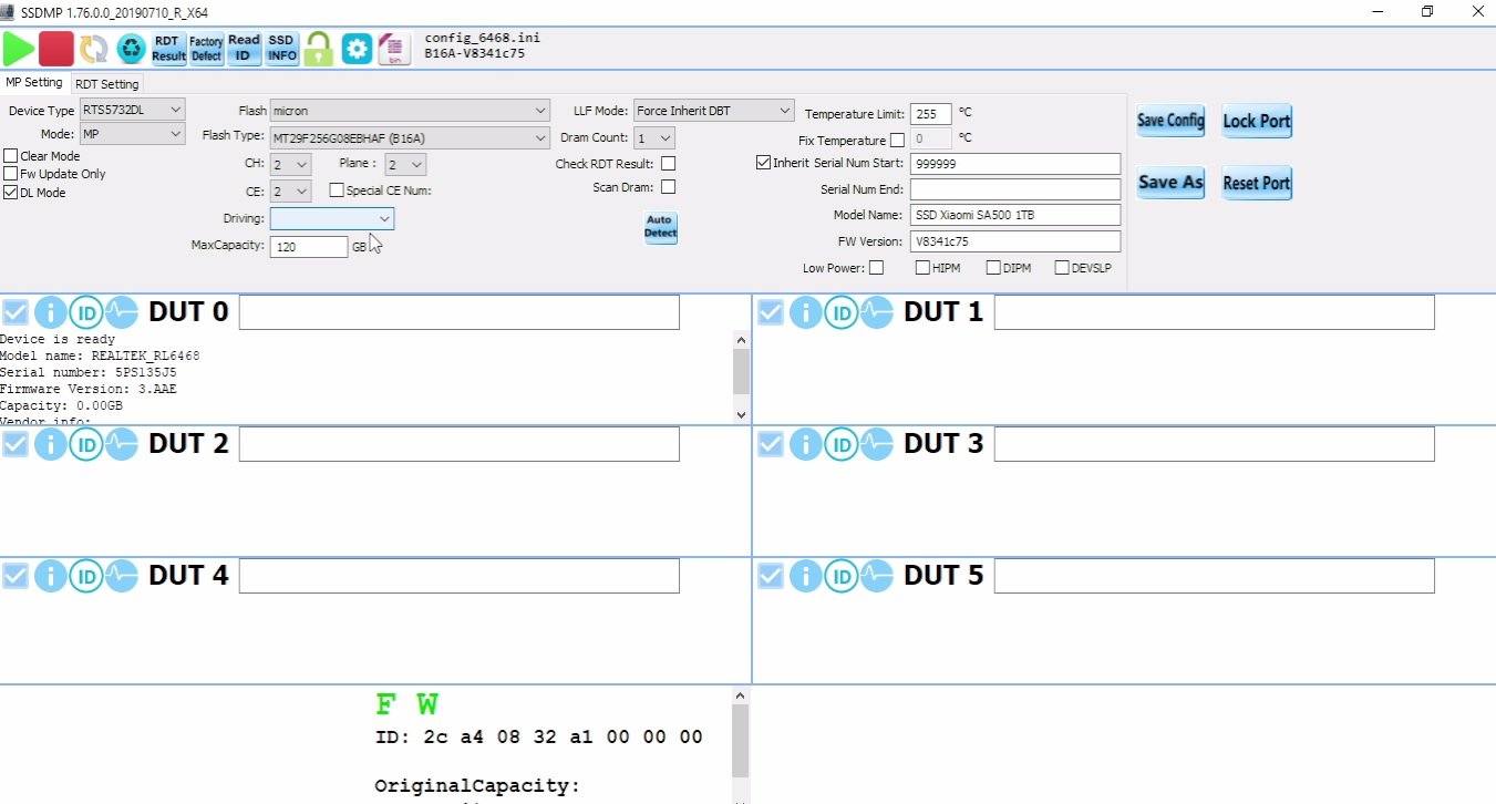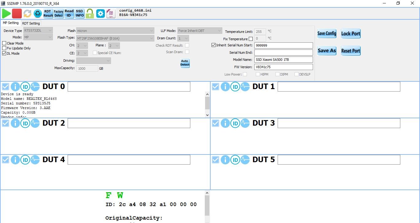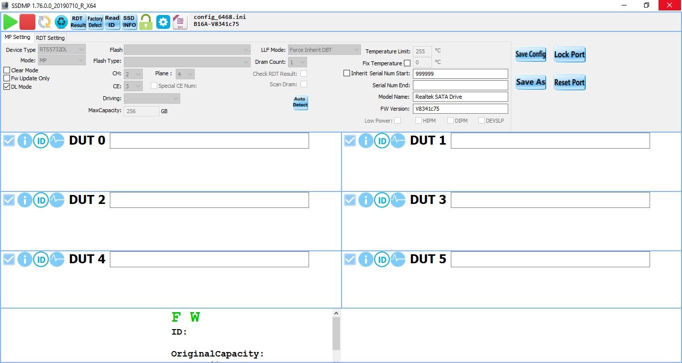Para realizar esta modificação vamos precisar utilizar o “Realtek RTS5732DL Mass Production Tool” cujo também é compatível com o Realtek RTS5732DLQ que serve para realizar modificações e gravações de firmware em SSDs como este com este controlador.