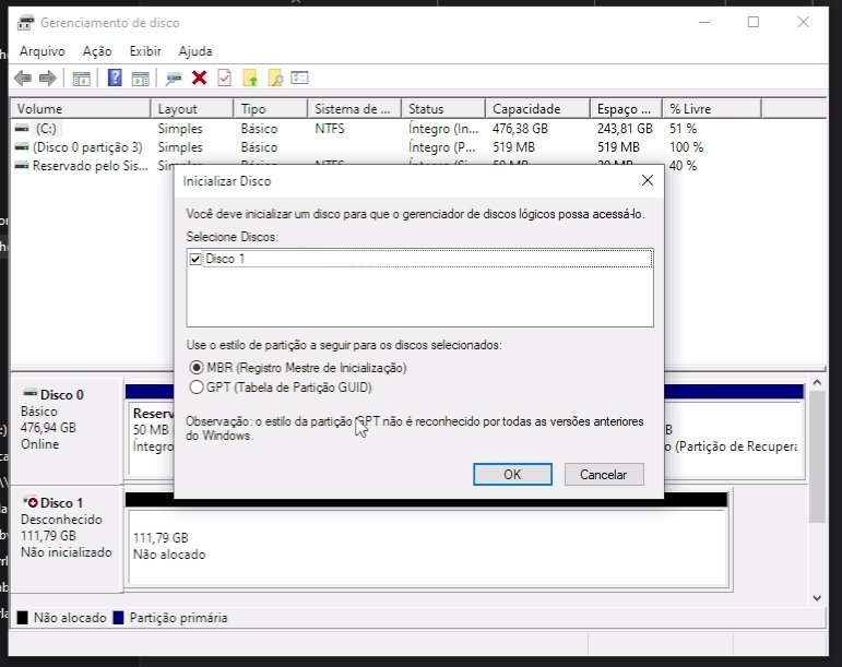 Agora resta realizar a modificação para a capacidade real e então utilizar o SSD.
