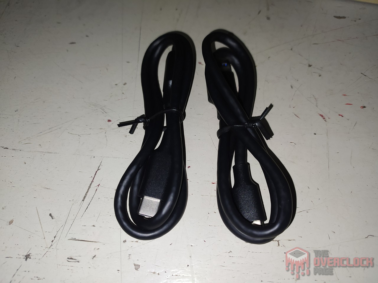 Ao removermos os conteúdos a caixa observamos que ele acompanha 2 cabos USBs, um USB-C para USB-C e um USB-C para USB-A. Ao menos desta vez os cabos são um pouco maiores, são de 50 cm.