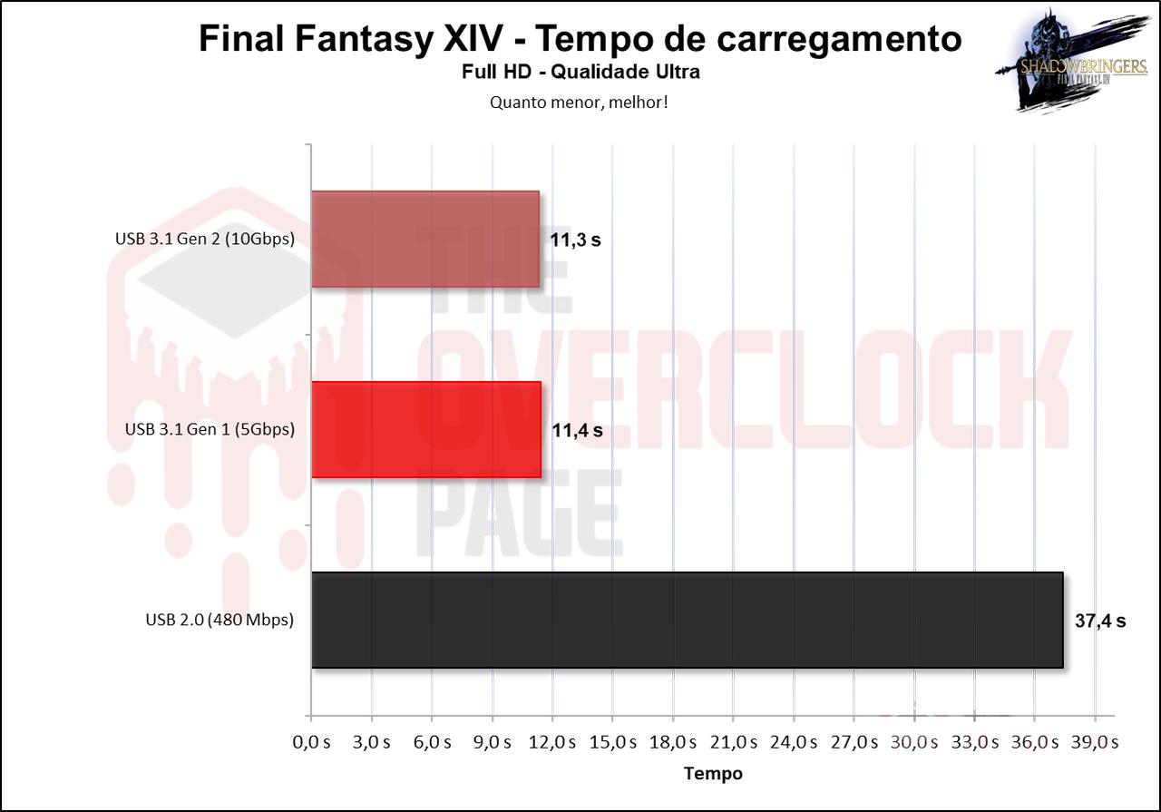 Neste trecho da análise vamos utilizar a ferramenta de benchmark integrada do Final Fantasy XIV que possibilita medir de forma precisa o tempo que foi necessário para carregar cada loading scene do game e no fim afere um tempo final.