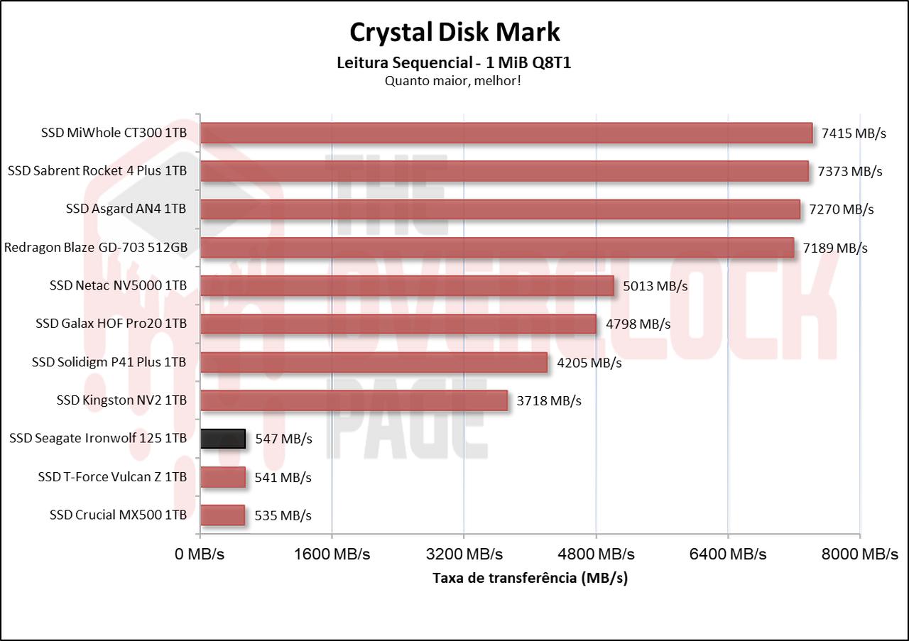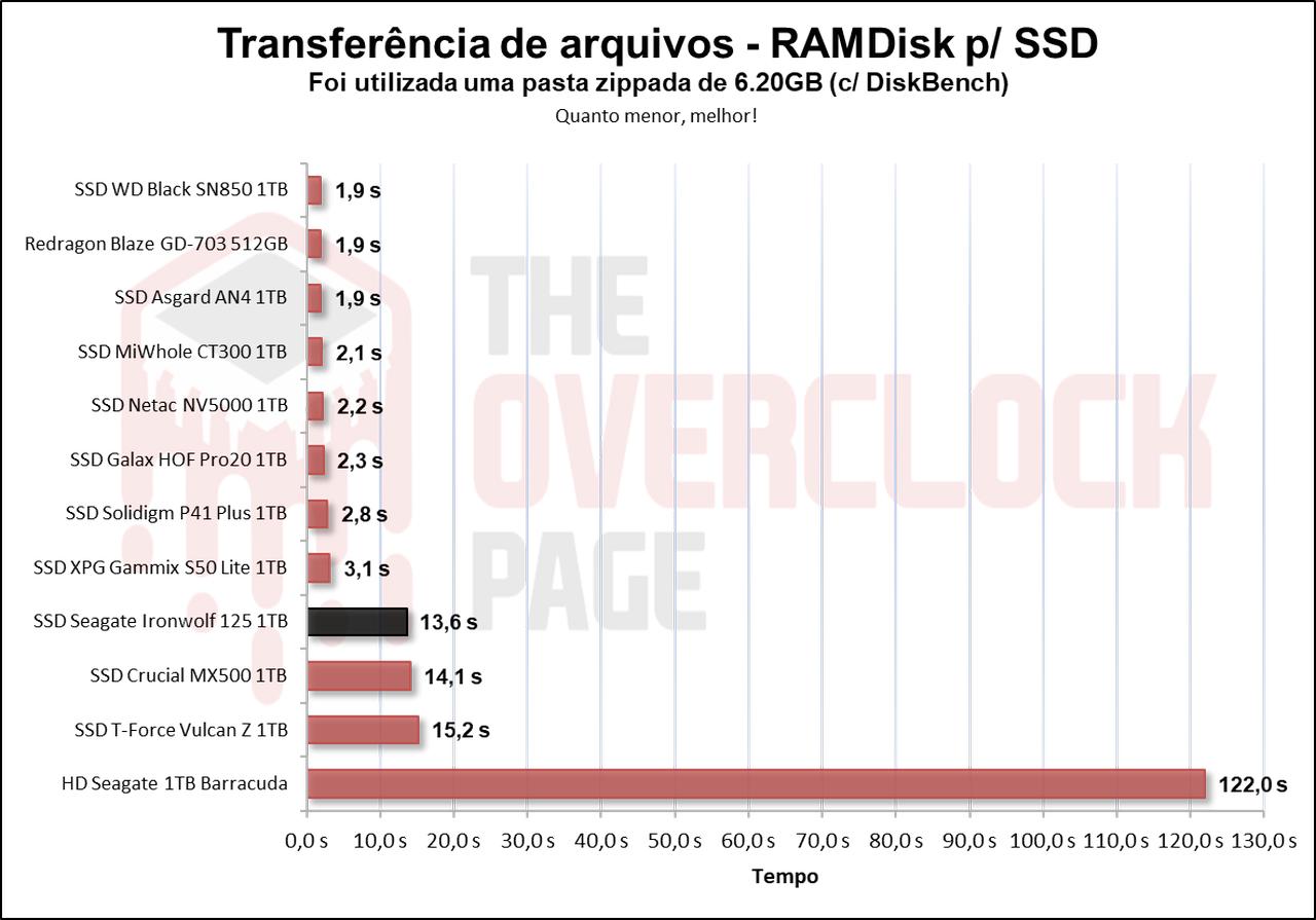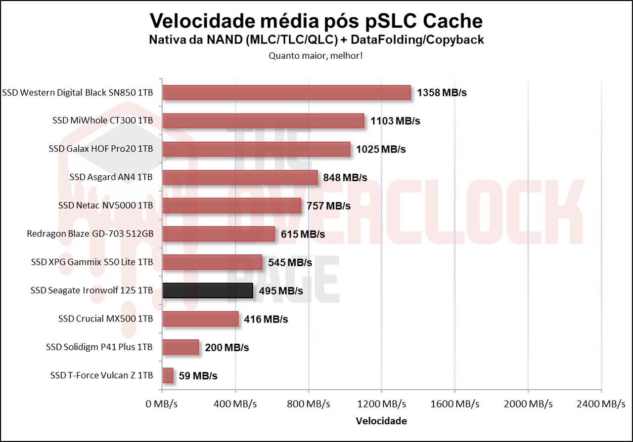 – SSD testado: SSD Seagate IronWolf 125 1TB (Firmware: SU3SC011)