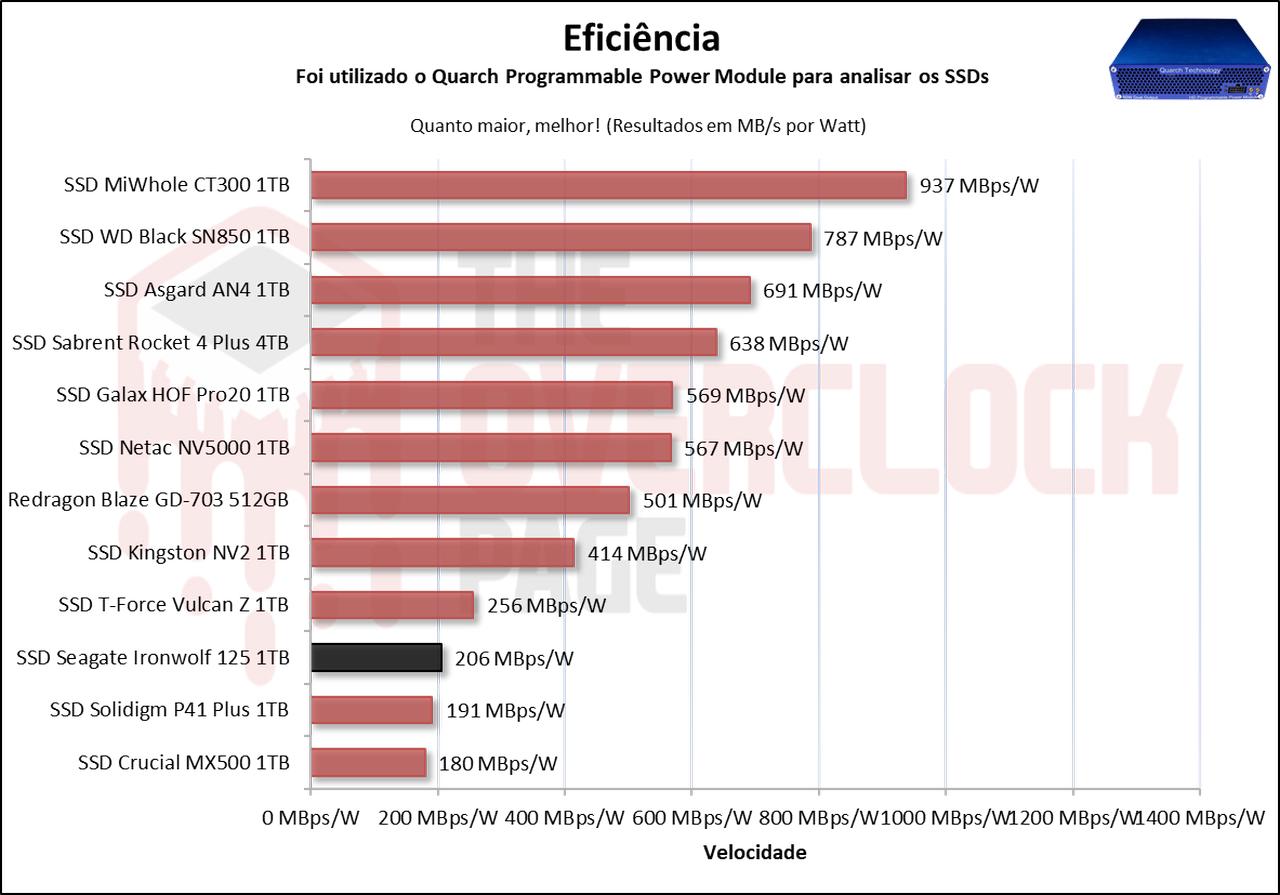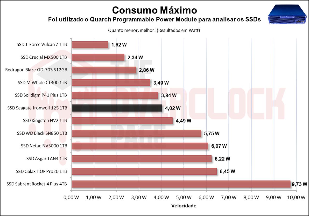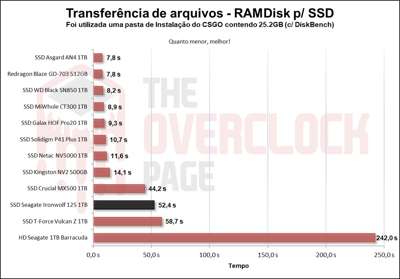 – SSD testado: SSD Seagate IronWolf 125 1TB (Firmware: SU3SC011)