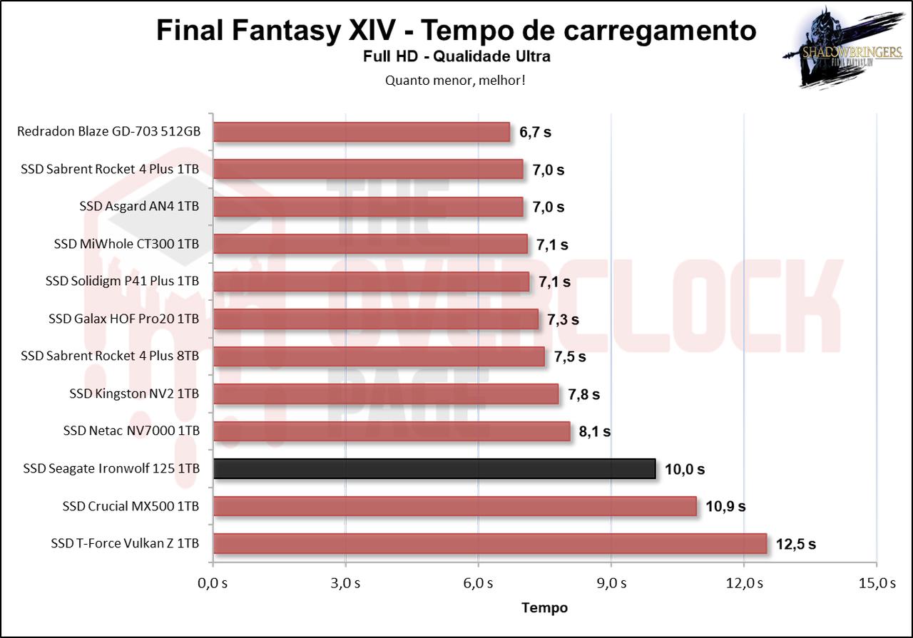 Neste game, vemos que o Seagate levou 10 segundos para realizar todas os carregamentos de texturas e cenas do benchmark, o que foi um resultado bom, tendo carregado o game 1 segundo mais rápido que o MX500.