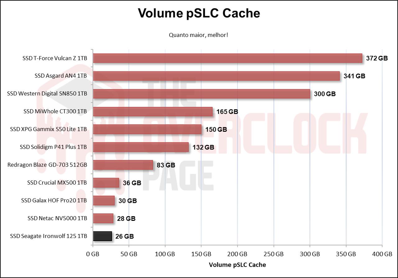 - Volume de SLC Cache minúsculo, porém sua velocidade fora do SLC Cache é quase igual