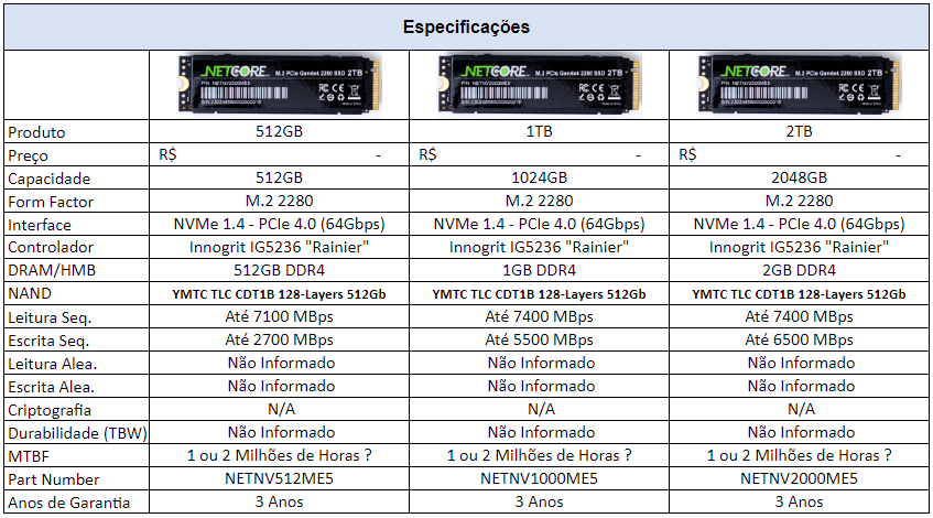 Hoje, testaremos um SSD NVMe da Netcore, do segmento topo de linha, modelo NETNV2000ME5, o qual a Netcore nos enviou para testarmos. Obrigado Netcore 🙂 .