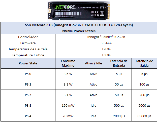 Como sempre mencionamos em análises sobre consumo de energia, neste trecho veremos mais sobre os estados de alimentação deste SSD.