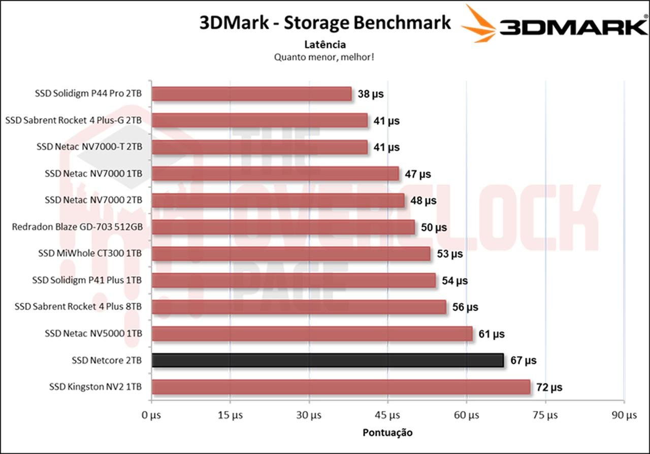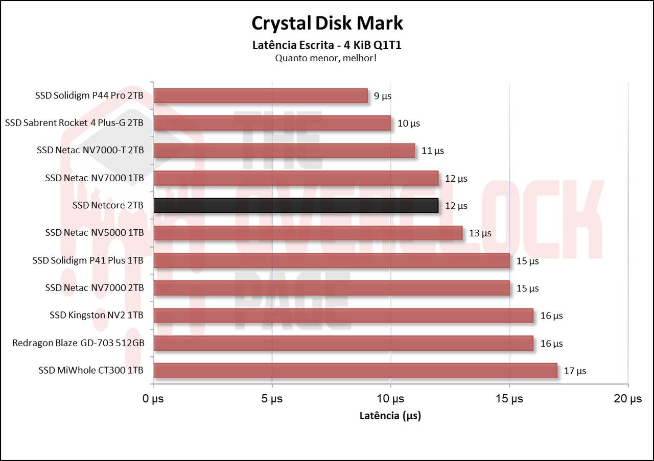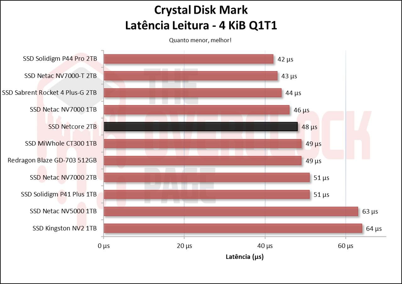 Já em suas latências, vemos que ele se destacou bem do NV7000 de 2TB que também tem a mesma construção interna, ponto positivo para ele aqui.