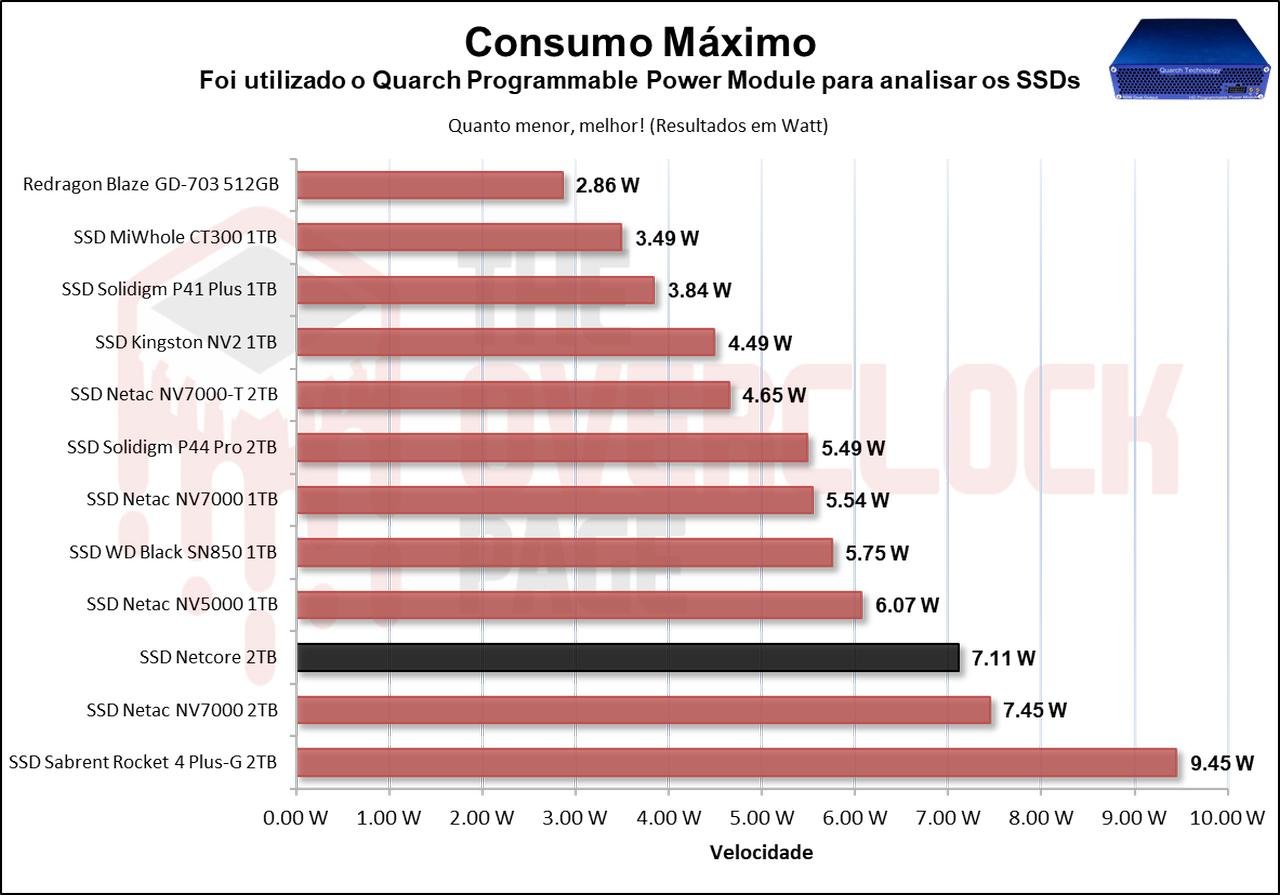 Com relação a seu consumo máximo, vemos que é algo característicos desses SSDs com IG5236 ficarem acima dos 7W em consumo máximo.