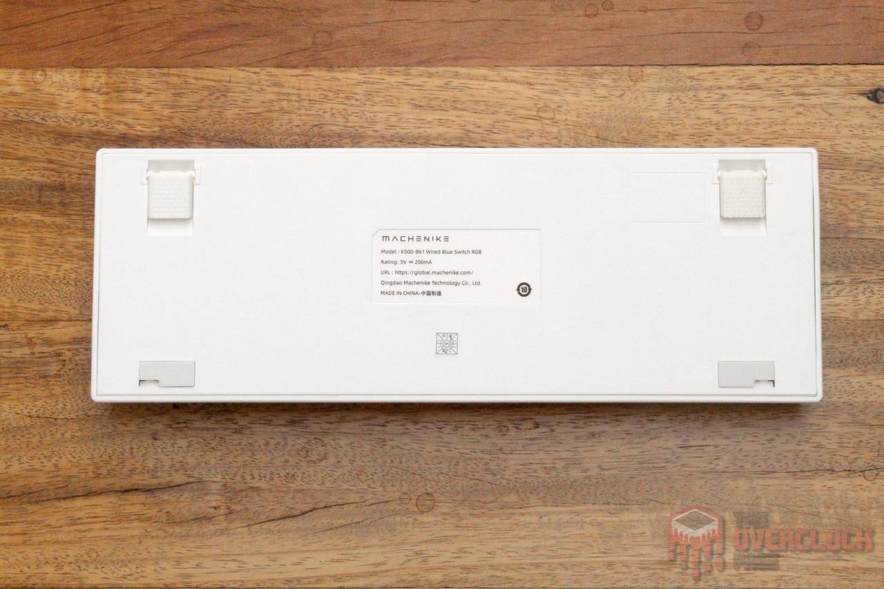 A parte inferior do teclado possui 2 borrachas nas extremidades e apesar de ser um modelo 60%, ele possui os “pezinhos” para ajuste da altura, que assim como o restante da carcaça, também são em plástico.
