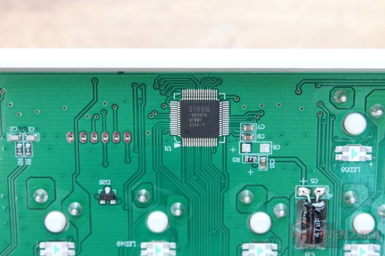 Relativo a sua construção interna, a qualidade do pcb é boa, sem soldas quebradiças ou sujeira de fluxo. O microcontrolador utilizado é o BYK916, que, aparentemente, trata-se de um rebrand do Sinowealth SH68F90.