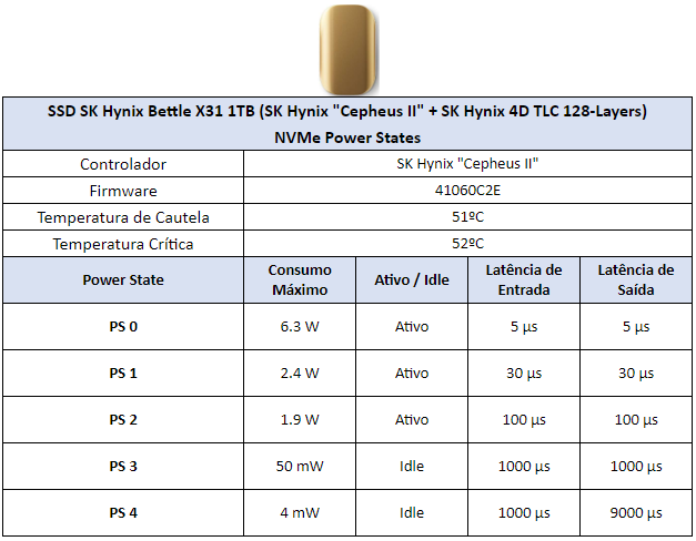 – SSD testado: SSD SK Hynix Beetle X31 1TB (Firmware: 41060C2E)