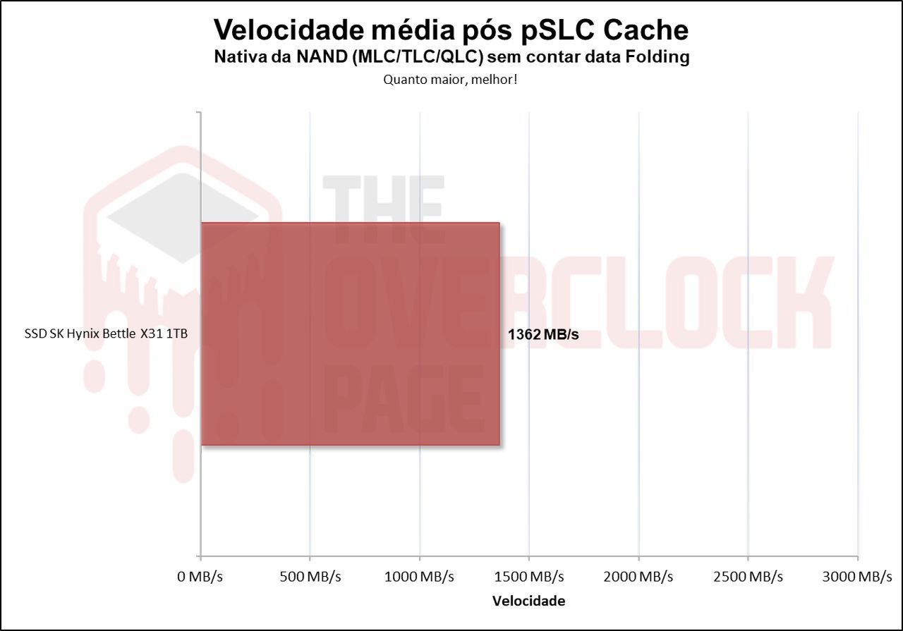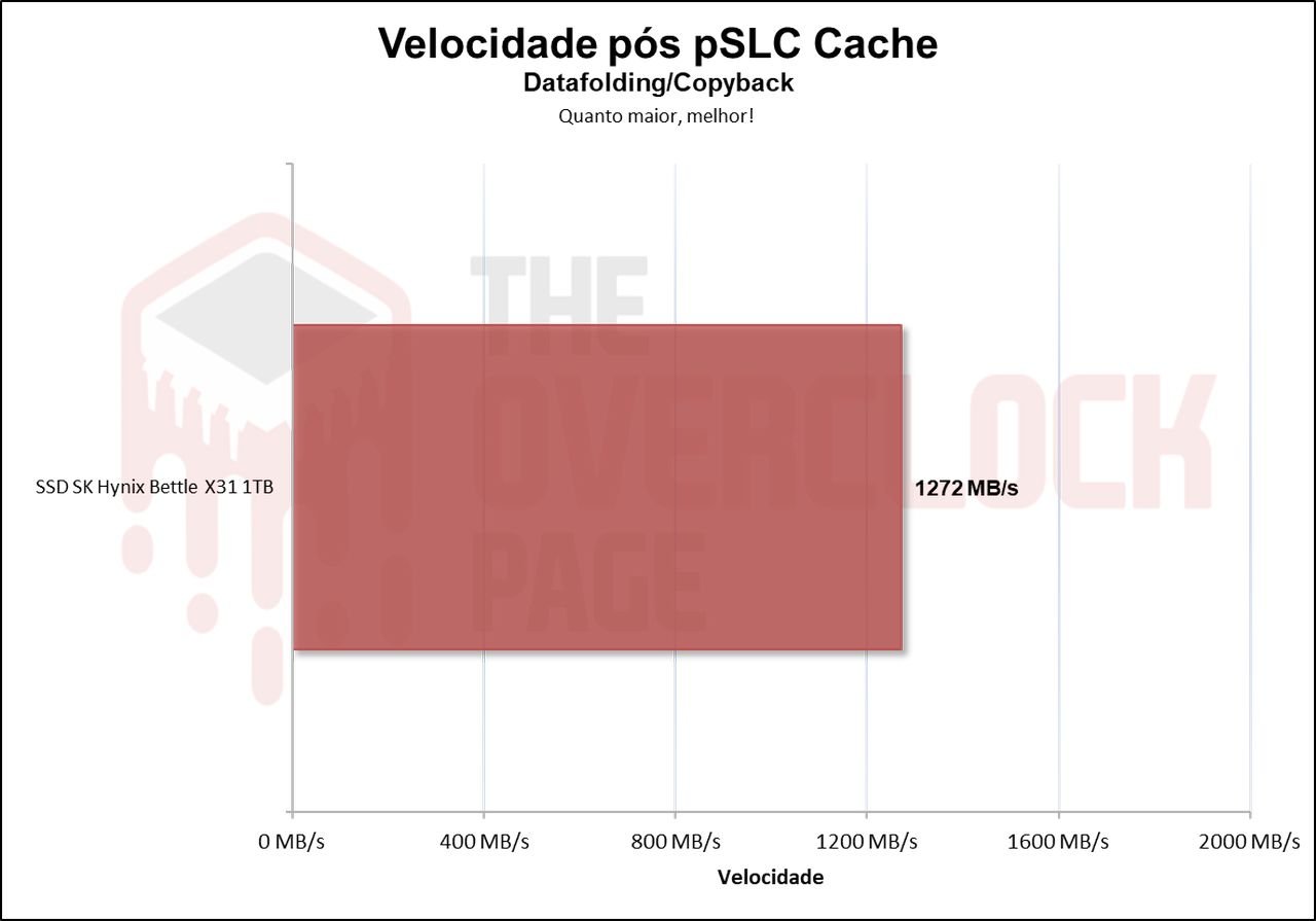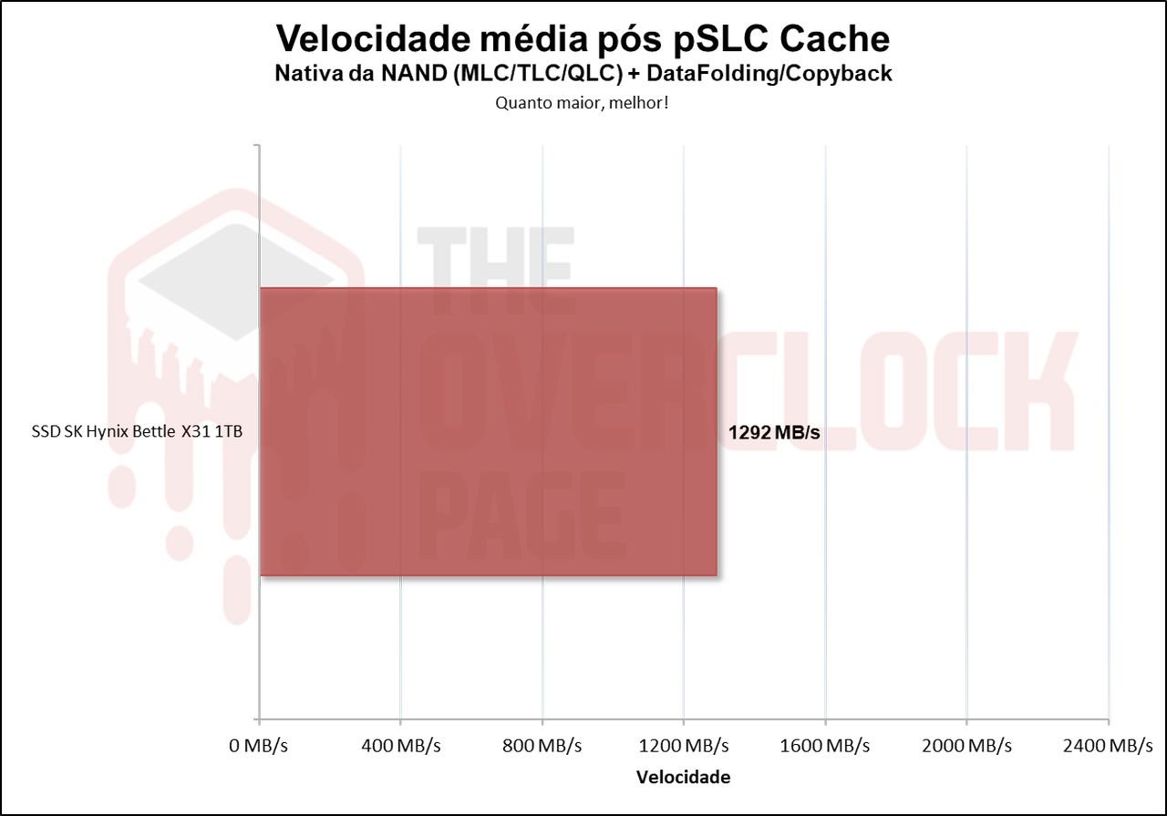Já sua média geral contanto o Folding junto de sua velocidade nativa foi de aproximadamente 1292 MB/s. Sendo acima dos 900 MB/s que a SK Hynix afirma este SSD ser capaz.