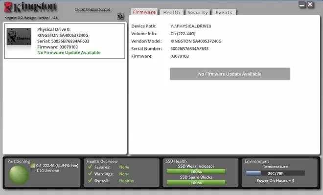 A Kingston também oferece através de uma página de download em seu website, um programa chamado “Kingston SSD Manager”, que oferece diversas opções para gerenciamento e controle de seus produtos, como veremos a seguir.