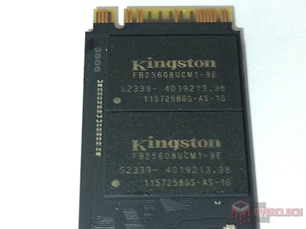 Com relação a seus circuitos integrados de armazenamento, o SSD de 2TB possui 8 chips Nand flash “FB25608UCM1-9E” que foram remarcadas pela Kingston. Tratam-se de Nands da fabricante norte-americana Micron, modelo B47R, sendo neste caso dies de 512Gb (64GiB) contendo 176-Layers de dados e um total de 195 gates, gerando uma array efficiency de 90,2%.