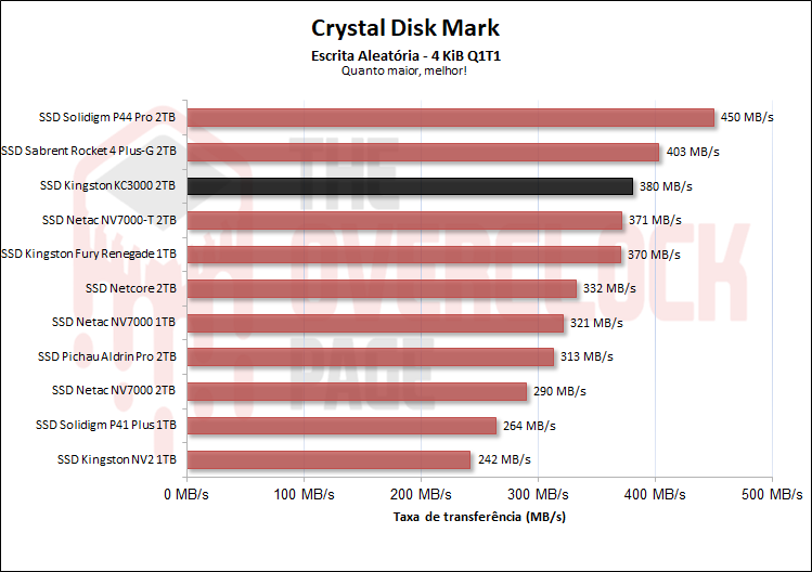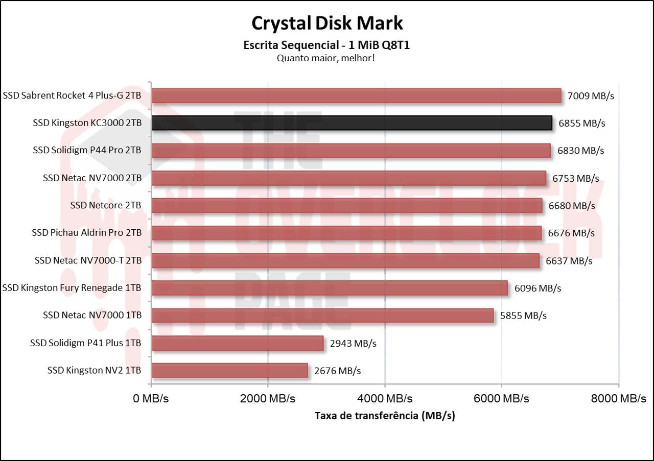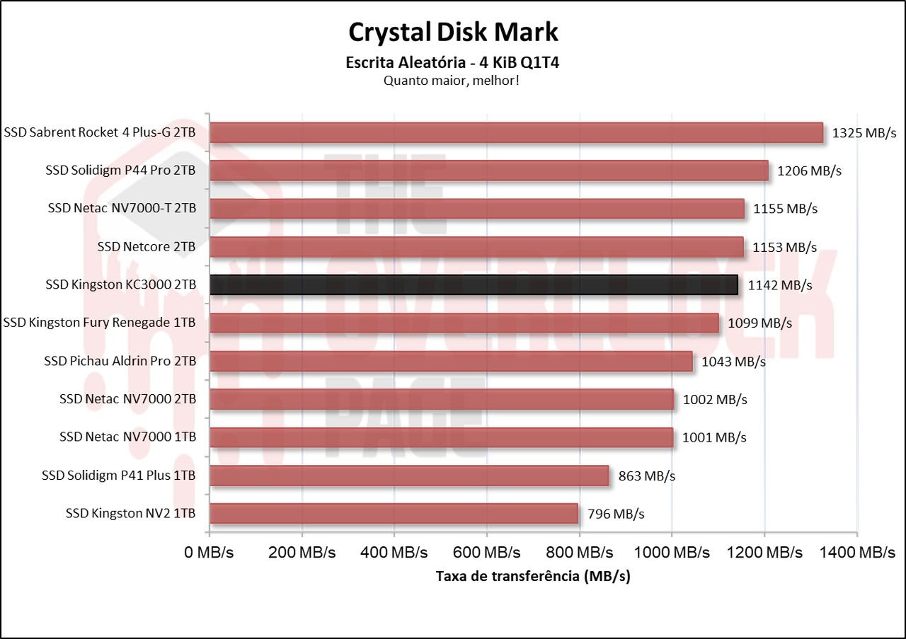 Já na sua escrita a diferença foi um pouco menor mas isso ocorre devido estarmos comparando o KC3000 de 2TB x o Fury de 1TB.