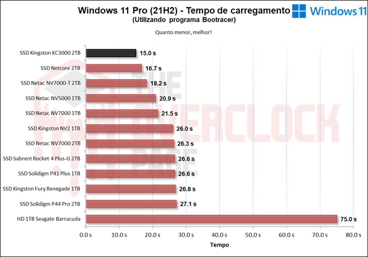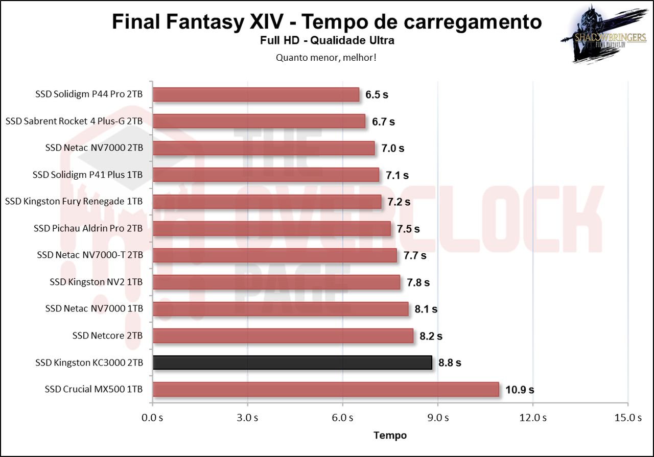 Já aqui, curiosamente, o KC3000 teve o tempo mais lento para carregar o game, enquanto o Renegade foi 1.6 segundos mais rápido, embora novamente seja uma diferença insignificante.