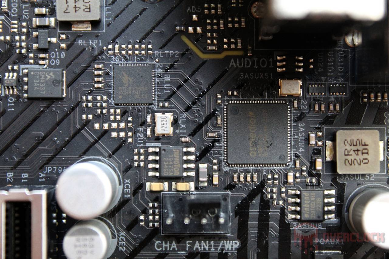 A respeito do VRM, a ASRock optou por usar um arranjo de 7+1 (VCORE+AXG) com o controlador RT3628AE, drivers RT9624F, onde cada fase possui componentes dobrados, ou seja, dois mosfets Sinopower SM4508NH de alta em paralelo, dois Sinopower SM4503NH de baixa em paralelo e dois indutores de 50 uH.