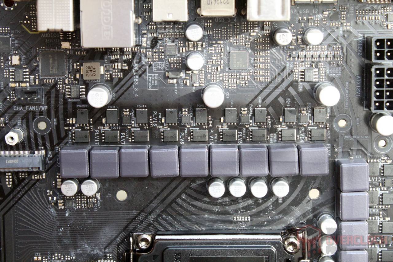 Sobre o VRM, o arranjo de 7+1 com componentes dobrados por fase, aliados ao robusto dissipador, resultaram em desempenho térmico bastante aceitável, com a placa dando conta dos 300W exigidos até mesmo pelo Core i9 com overclock ou “MCE ON” sem limite de corrente, ainda que nesse caso, seja interessante recorrer à ventilação forçada no VRM, leia-se, o famoso fan soprando na região.