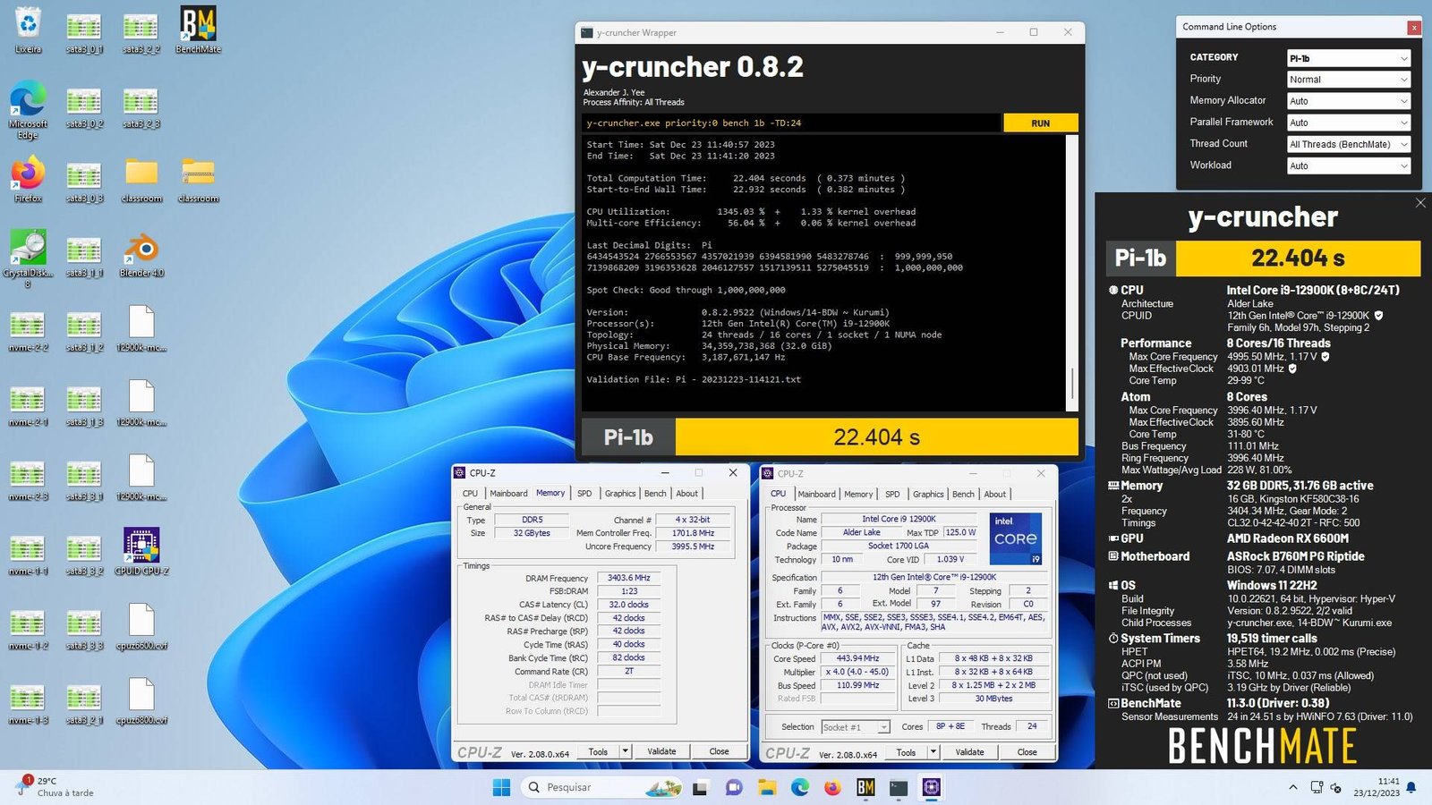 Software utilizado: Windows 11 x64, Benchmate 10.12.2, Blender 4.0, Crystalmark 8.0.4 x64, HWiNFO 7.62