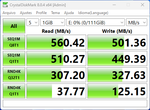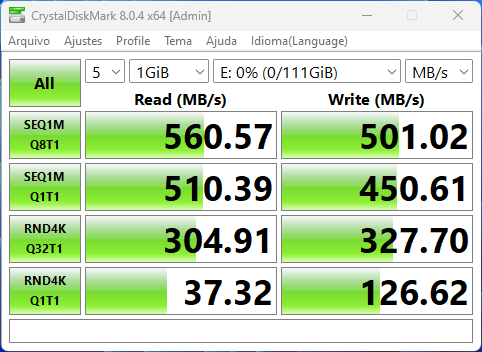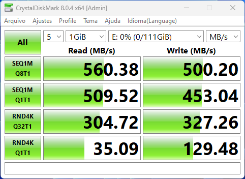Assim como nas M.2, também foi possível chegar ao limite das portas SATA, com elas apresentando desempenho bastante próximo entre si.