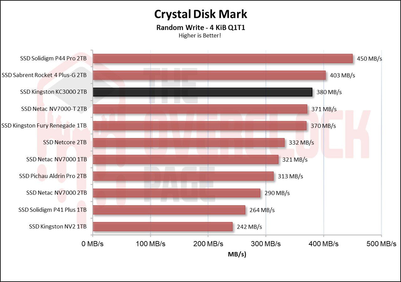 In the writing test, the difference was a bit smaller, but this is expected as we are comparing the 2TB KC3000 with the 1TB Fury Renegade.
