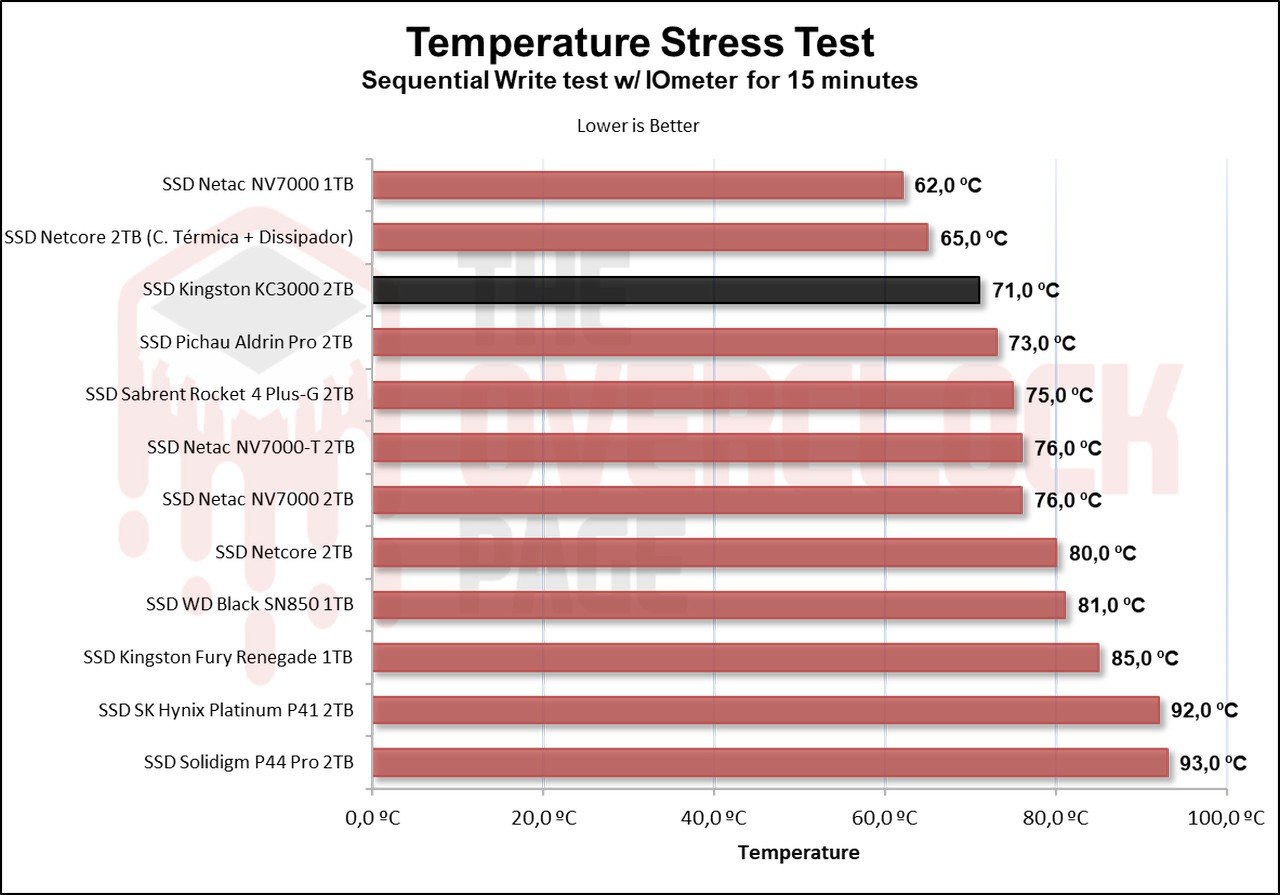 In this section of the analysis, we will observe the temperature of the SSD during a stress test, where the SSD receives files continuously. This is done to determine if there was any thermal throttling with its internal components that could lead to a bottleneck or performance loss.