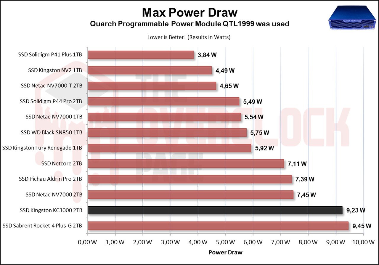 Regarding its maximum power consumption, it almost reached the record for the highest power-consuming Gen4 SSD in the comparison, which is obviously a negative point.
