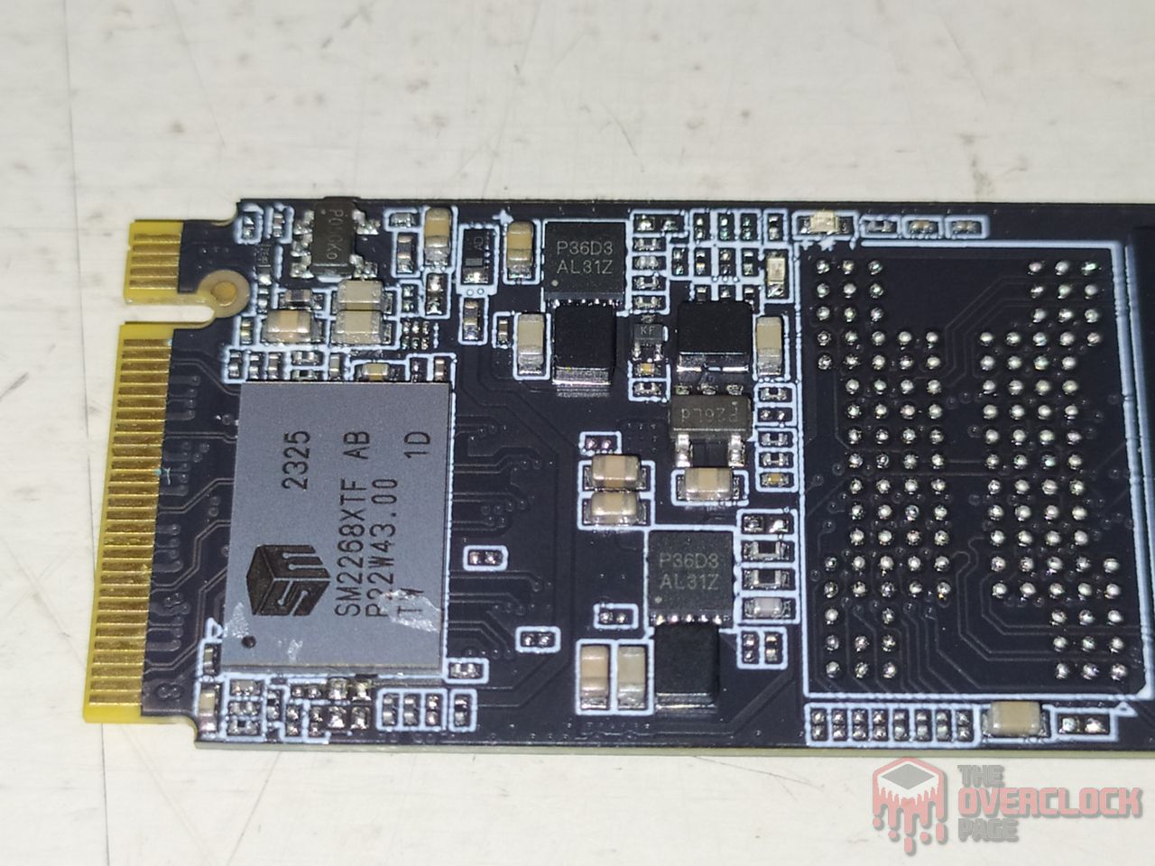 On its front PCB, we have the controller chip, 2 NAND flash modules, and various components of the SSD’s VRM, which we will also discuss.