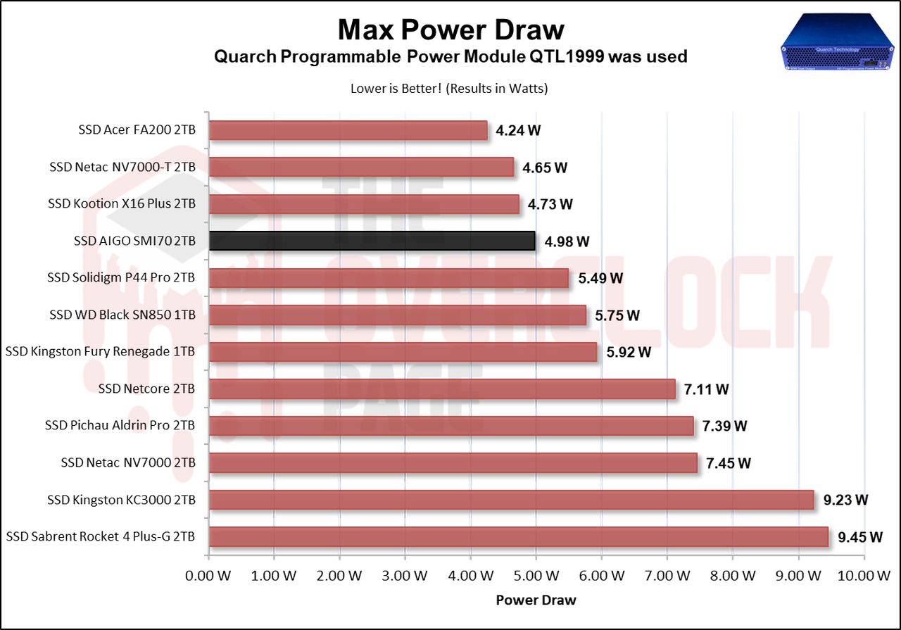 Regarding its maximum power consumption, it’s possible to observe that it achieves a slightly lower result than 5W, which is lower than the Solidgm P44 Pro, but still a bit higher than SSDs with MAP1602.