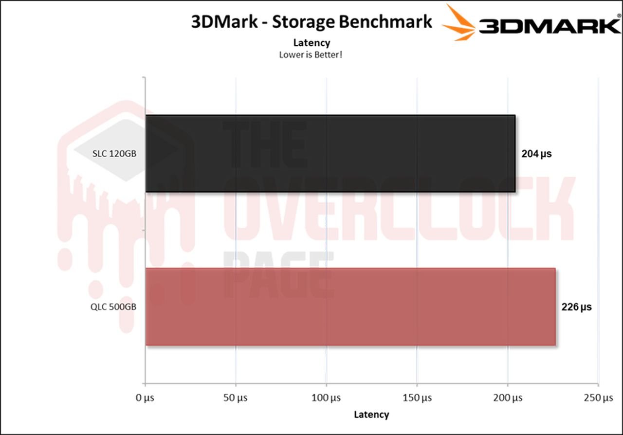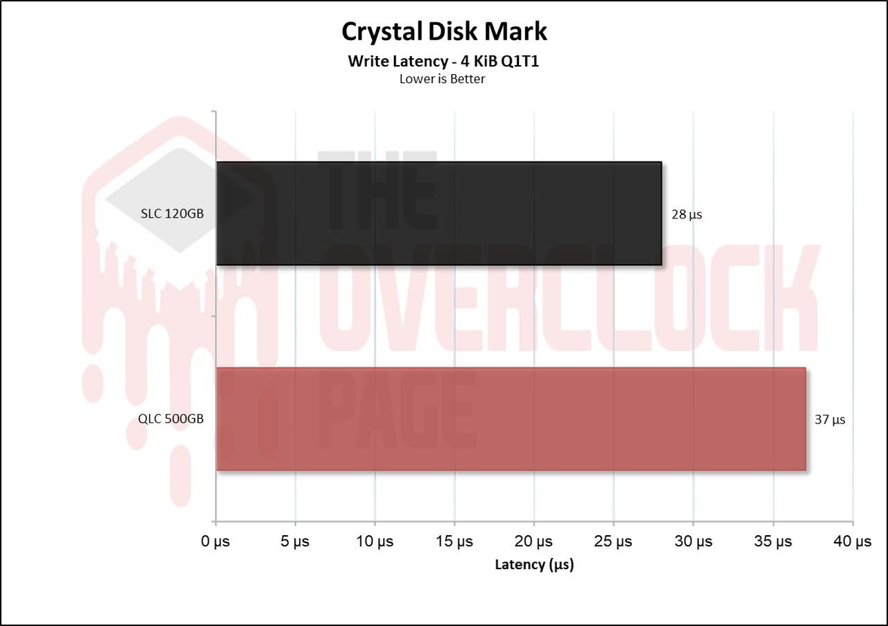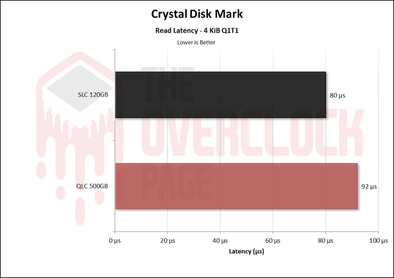 In terms of latency, there was indeed a considerable drop because when the SSD is in Idle, its NANDs, when they start to write or “read,” are in native mode, which would be QLC, and until they are reprogrammed to SLC, they have a certain latency. However, with the SSD in full pSLC mode, this latency is much lower because it always stays in pSLC mode.