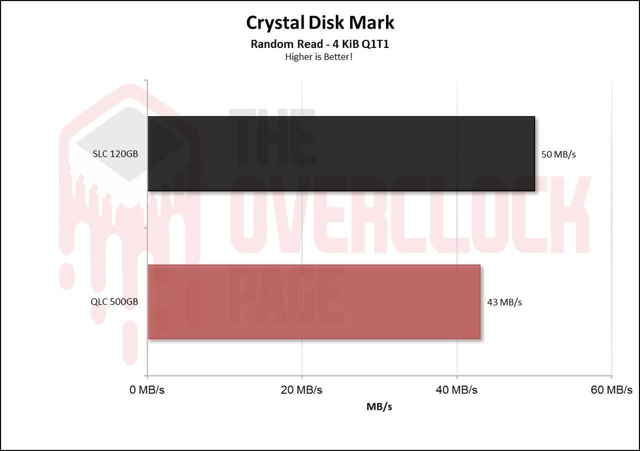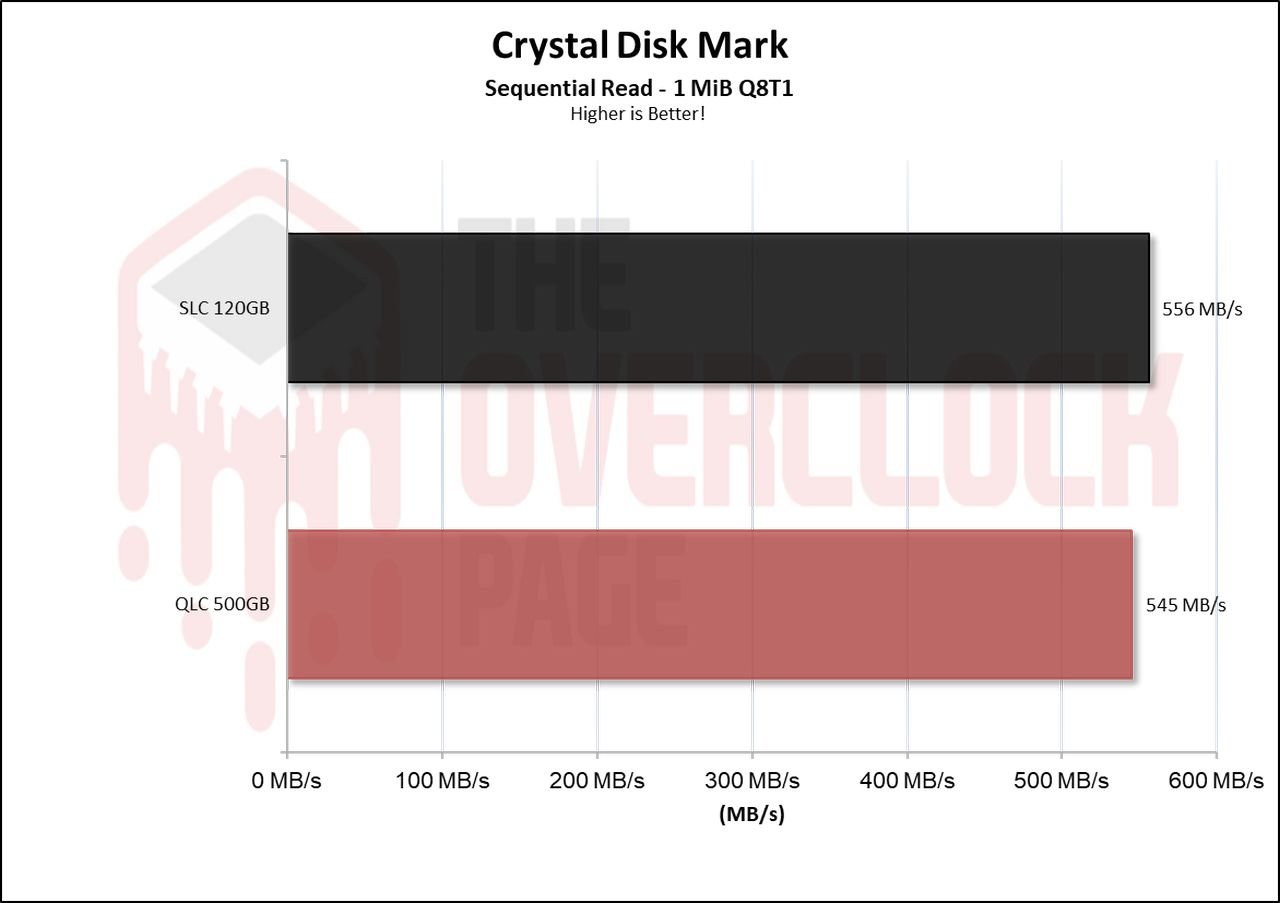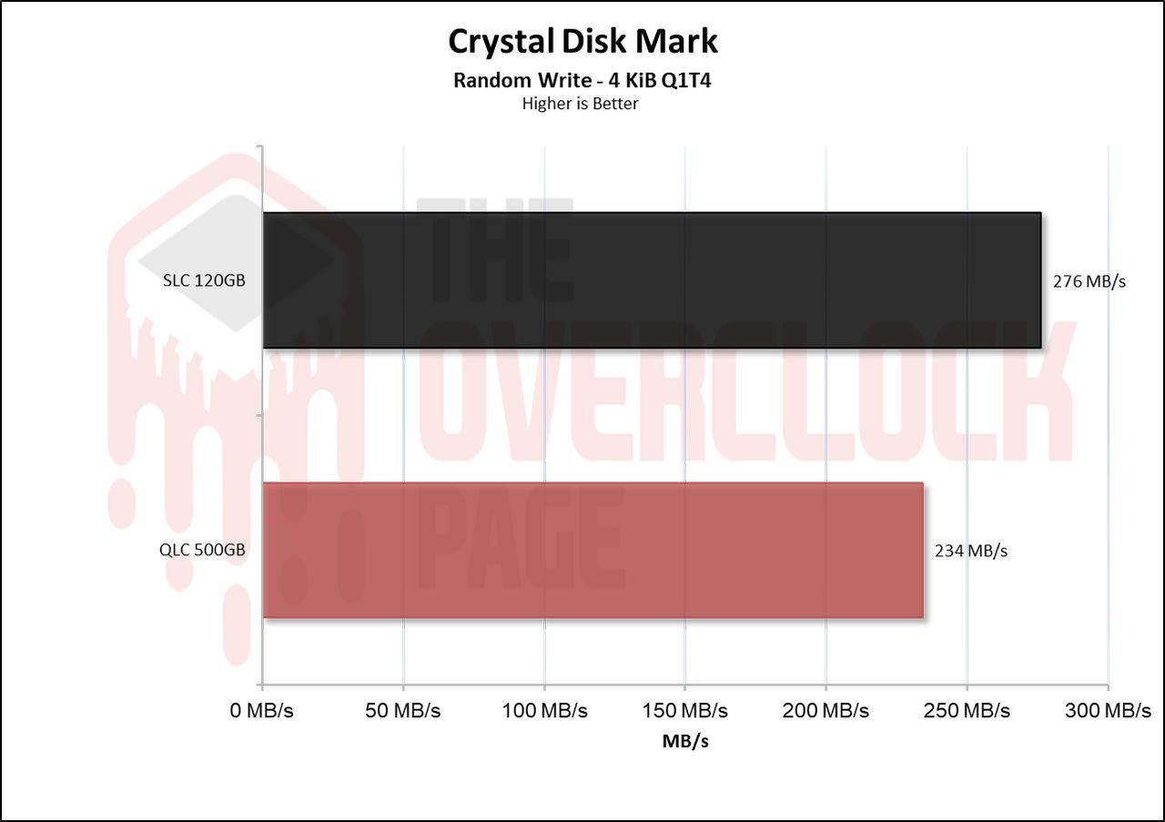 In terms of latency, there was indeed a considerable drop because when the SSD is in Idle, its NANDs, when they start to write or “read,” are in native mode, which would be QLC, and until they are reprogrammed to SLC, they have a certain latency. However, with the SSD in full pSLC mode, this latency is much lower because it always stays in pSLC mode.