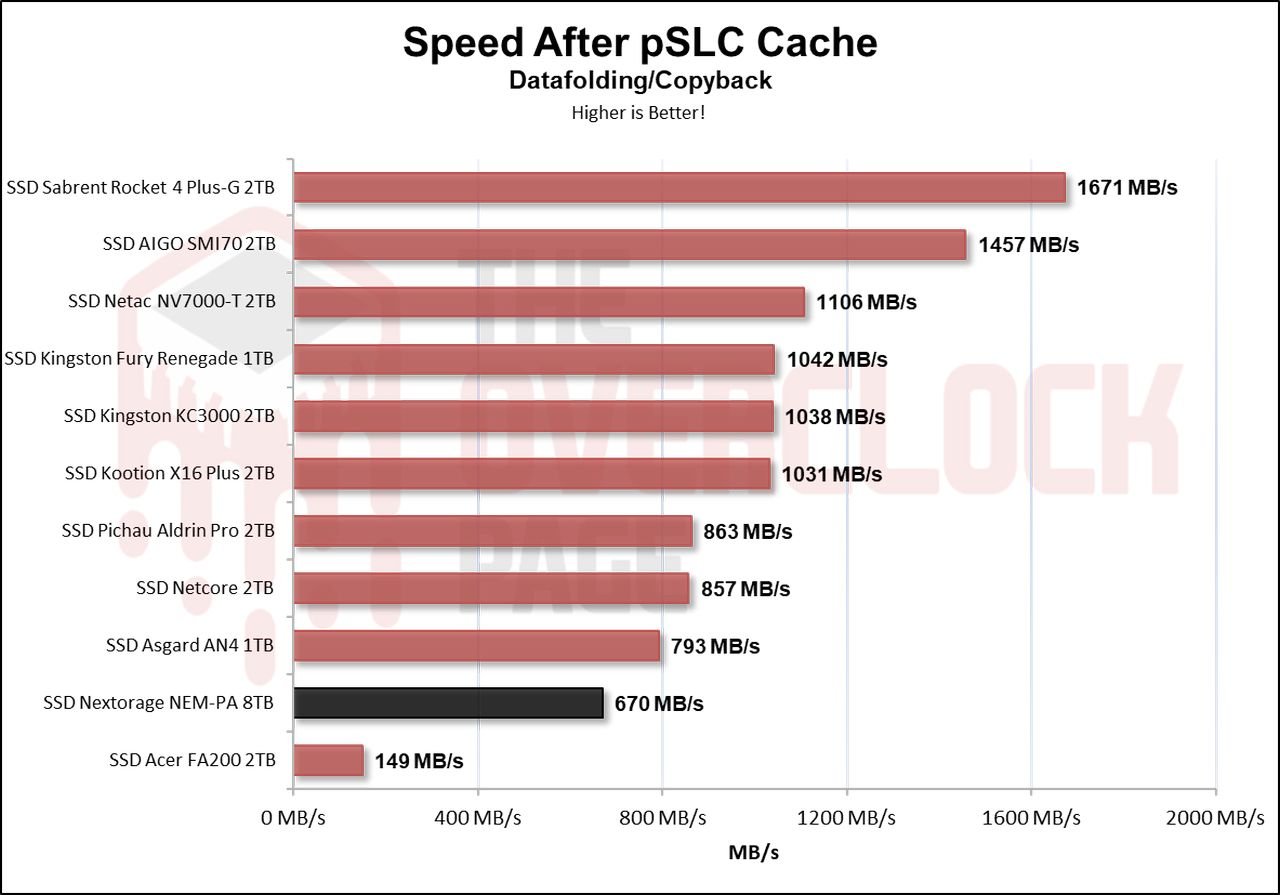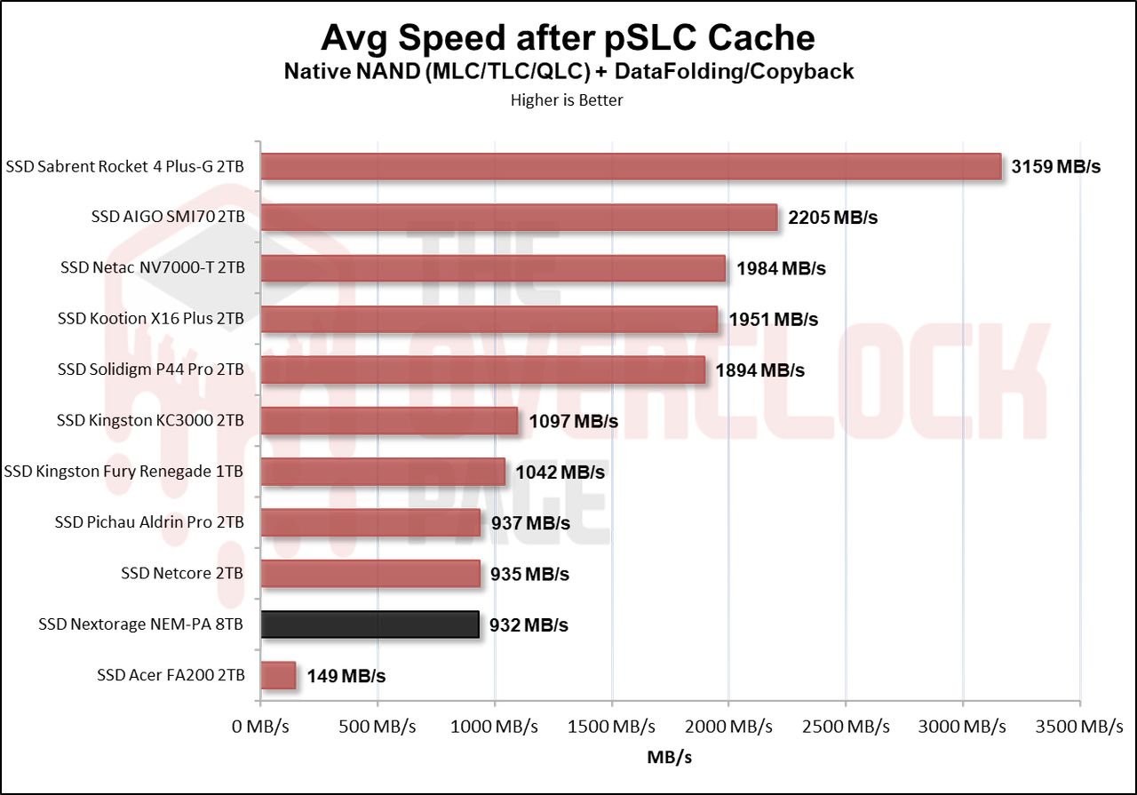 - Decent sustained write speed post-SLC Cache, although not the highest.