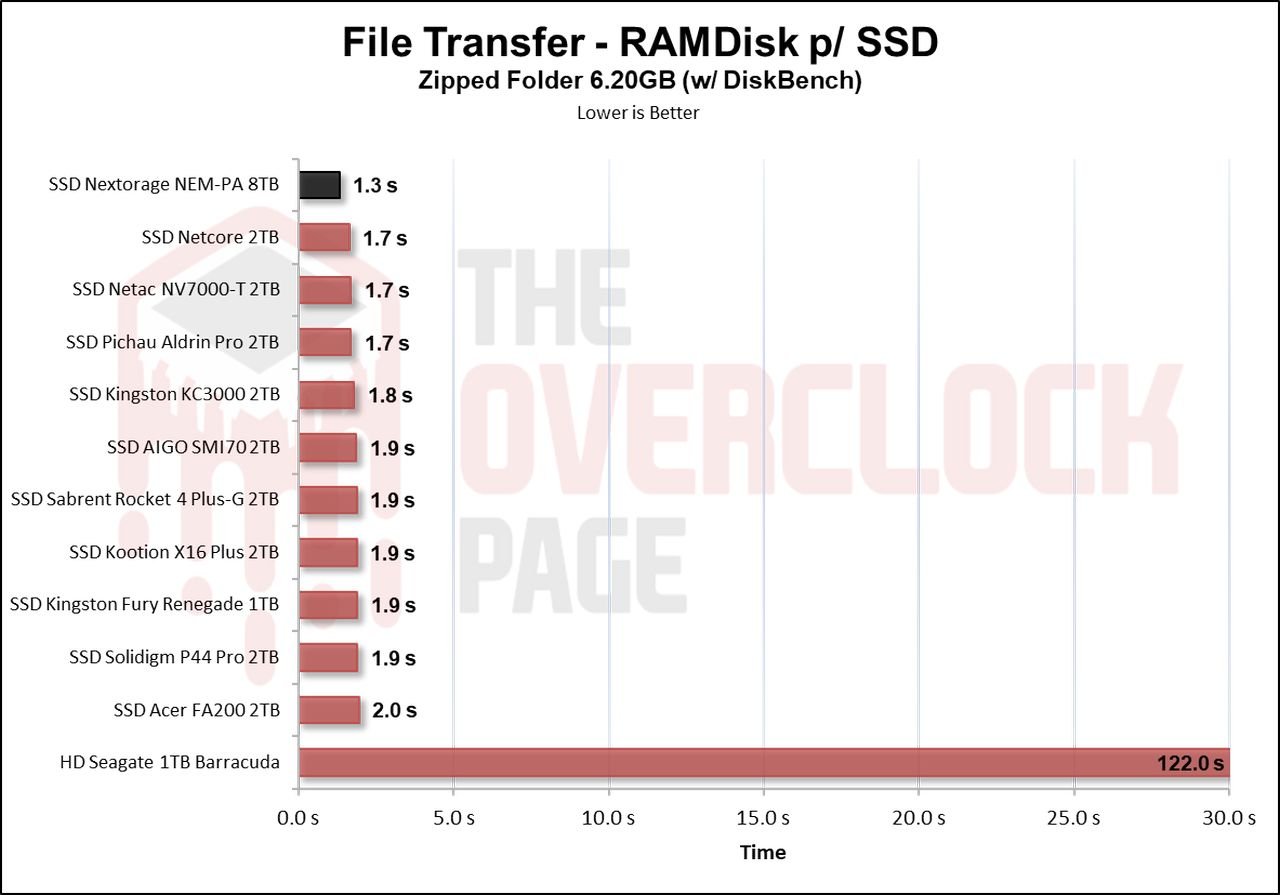 In this benchmark, various storage-related tests are conducted, including game loading tests such as Call of Duty Black Ops 4, Overwatch, recording and streaming with OBS of a 1080p 60 FPS gameplay, game installations, and file transfers of game folders.