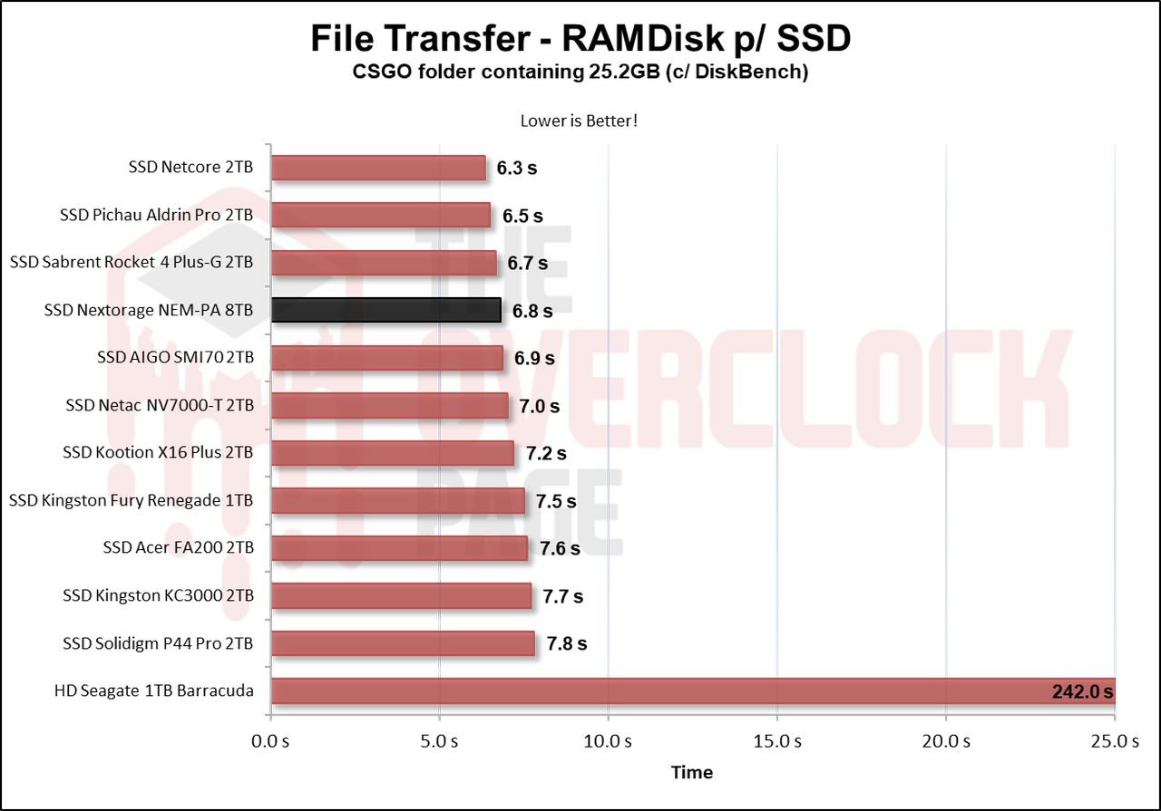 In this test, files were copied from a RAM Disk to the SSD to see how it performs. The Windows 10 21H1 ISO file of 6.25GB (1 file) and the CSGO installation folder of 25.2GB were used.