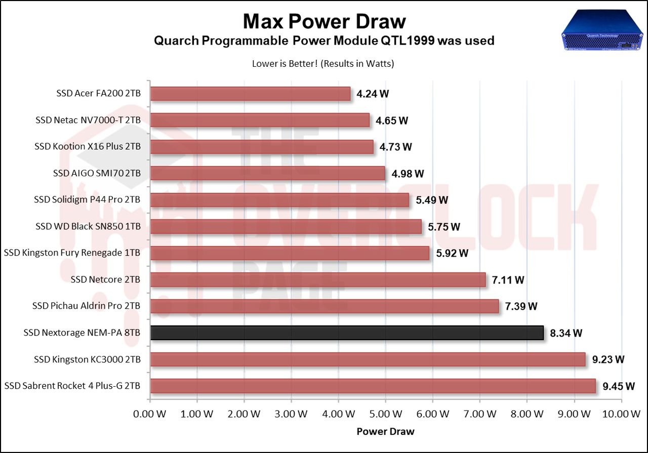 With regard to its maximum power consumption, we can see that it is quite high but still falls below other SSDs like the new Sabrent, as they have a much higher bandwidth.