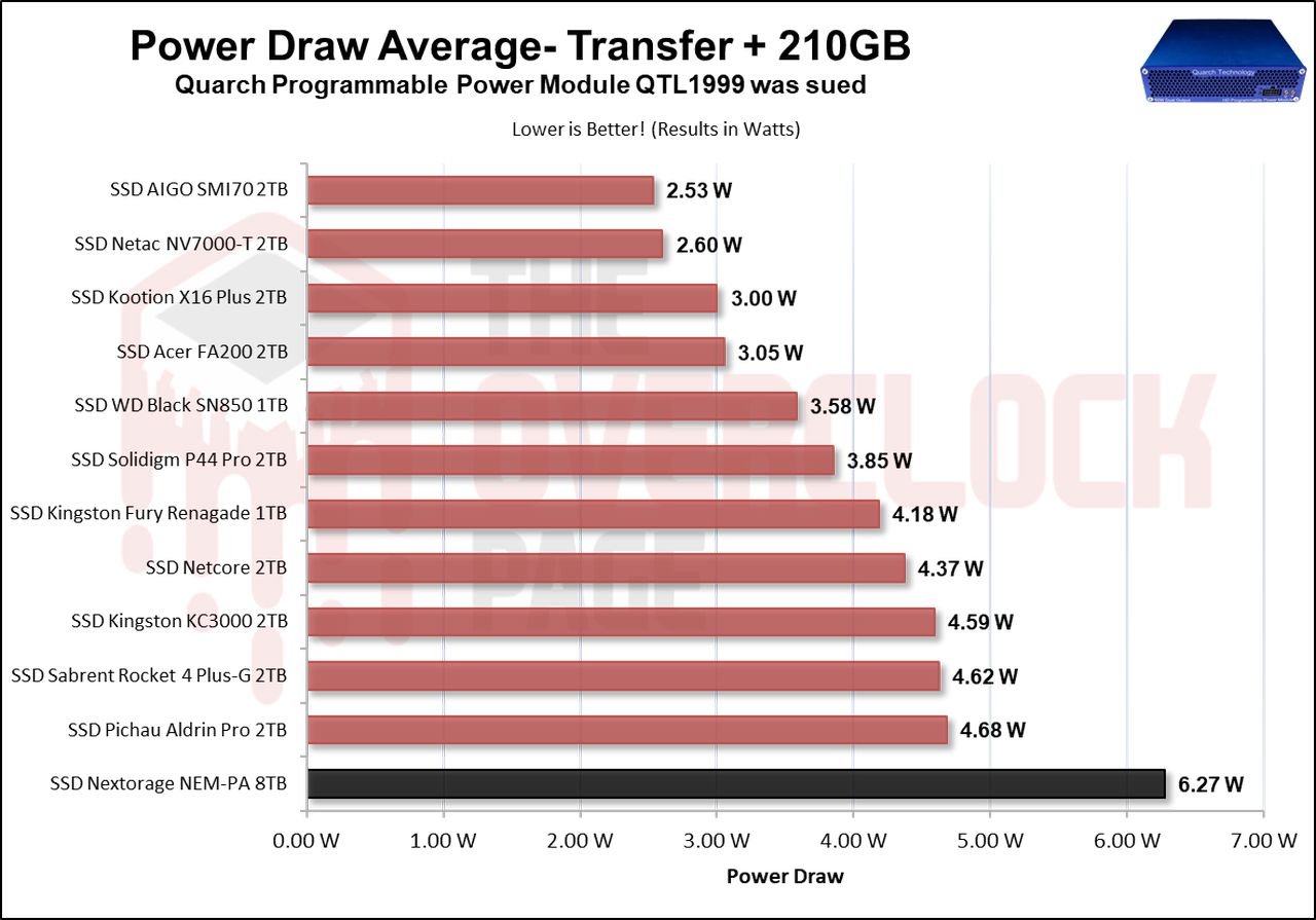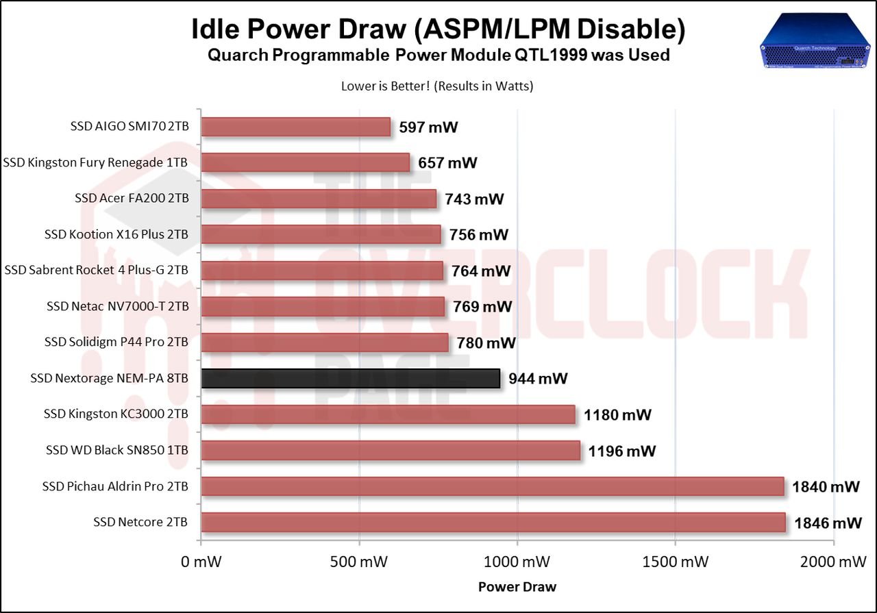 During this benchmark, we see that these Phison projects with Kioxia NANDs in high-density SSDs really leave something to be desired, as the average power consumption is very high, being 35% higher than the Sabrent with Phison E18 and Micron B47R.