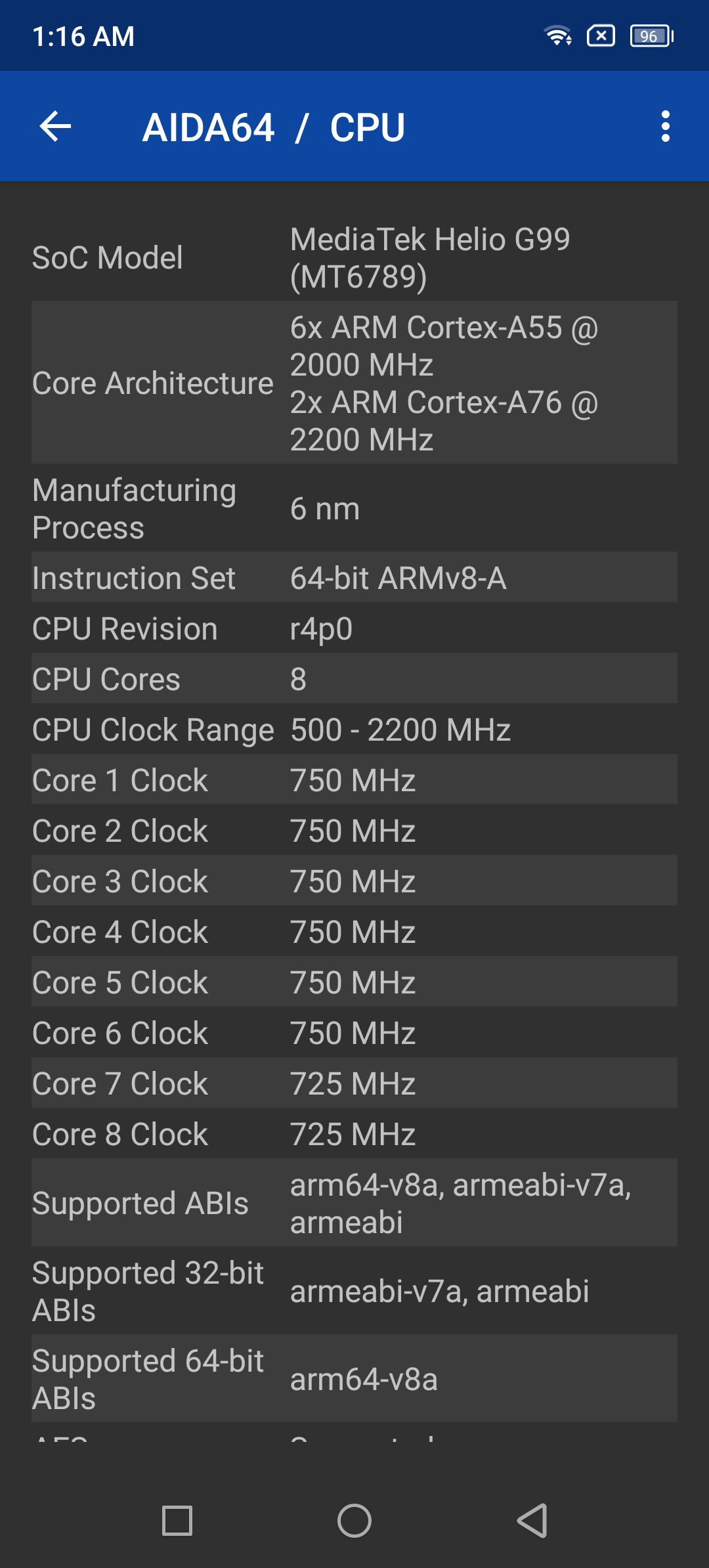 Esse SoC acompanha um conjunto de 8 núcleos com arquitetura ARM 64bits, ARMv8.2-A (A32, A64). O P99 vem com 2 núcleos Cortex-A76 trabalhando a uma frequência de até 2.2GHz, sendo esses núcleos de “alto desempenho” e mais outros 6 núcleos de “eficiência” Cortex-A55 que operam em uma frequência também de 2.0GHz, o que difere de seu antecessor, acompanhava os Cortex-A75 que tem um IPC um pouco inferior