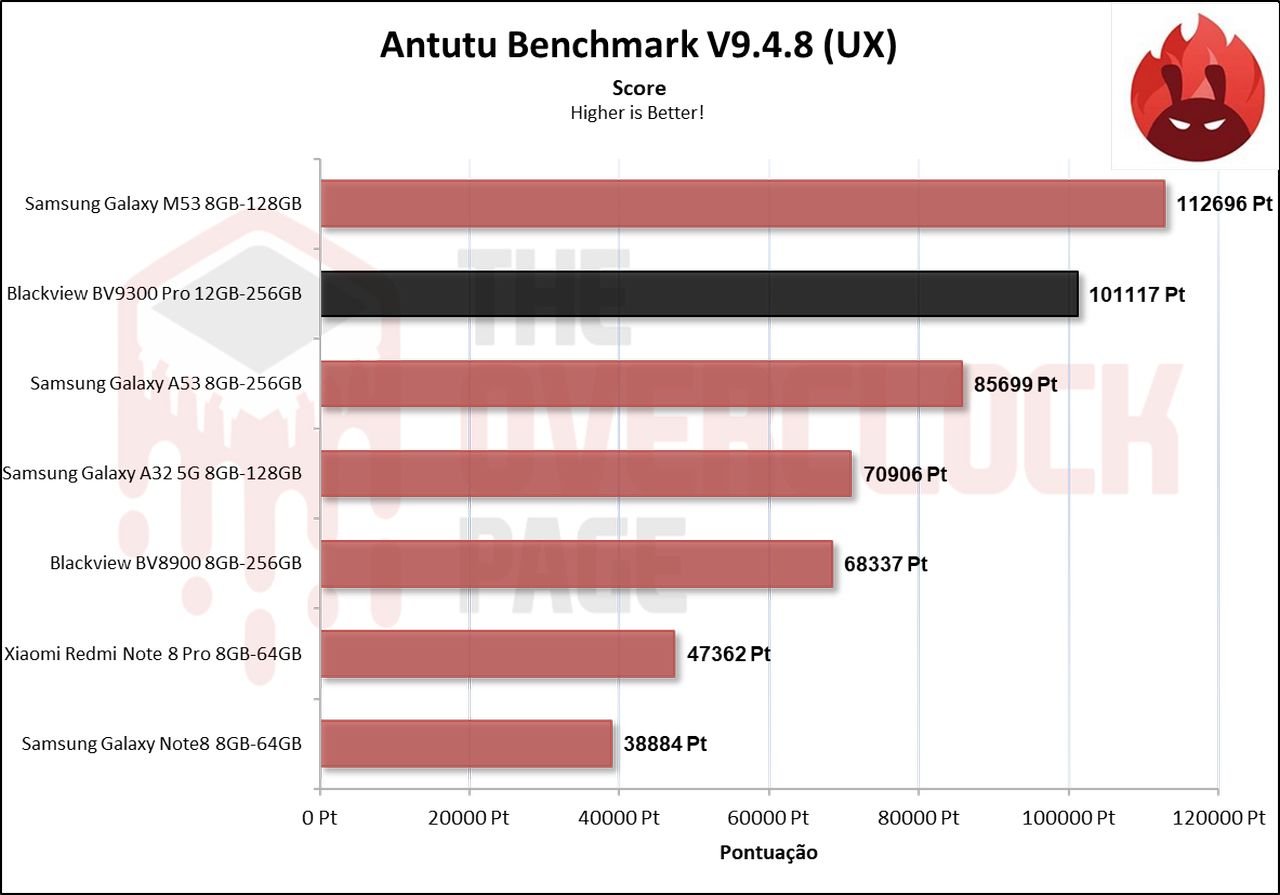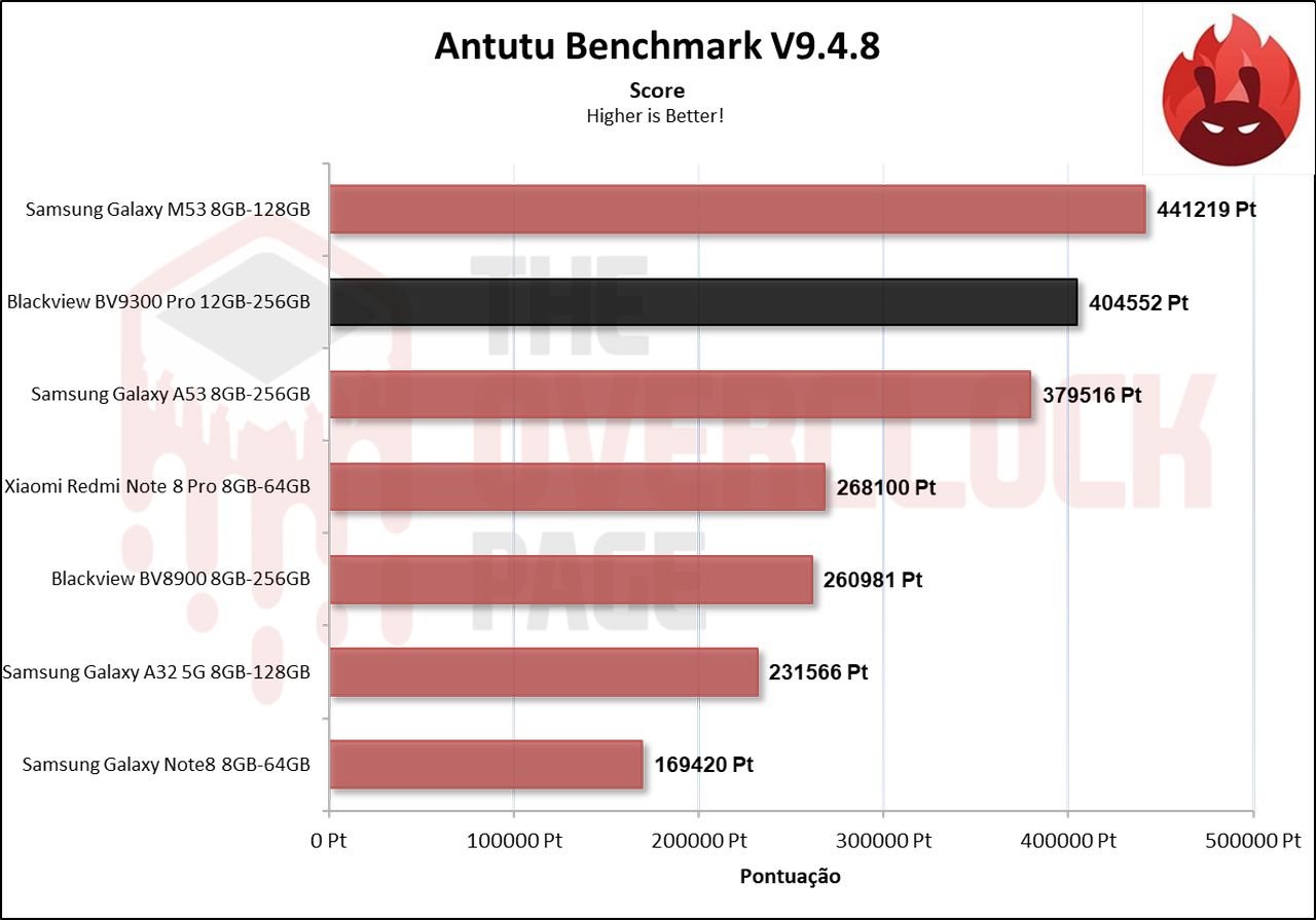 Levando isto em consideração, ele apresentou um desempenho superior ao anterior BV8900 ficando apenas atrás do até então Galaxy M53 que hoje já deve ter sido substituido pela Samsung.