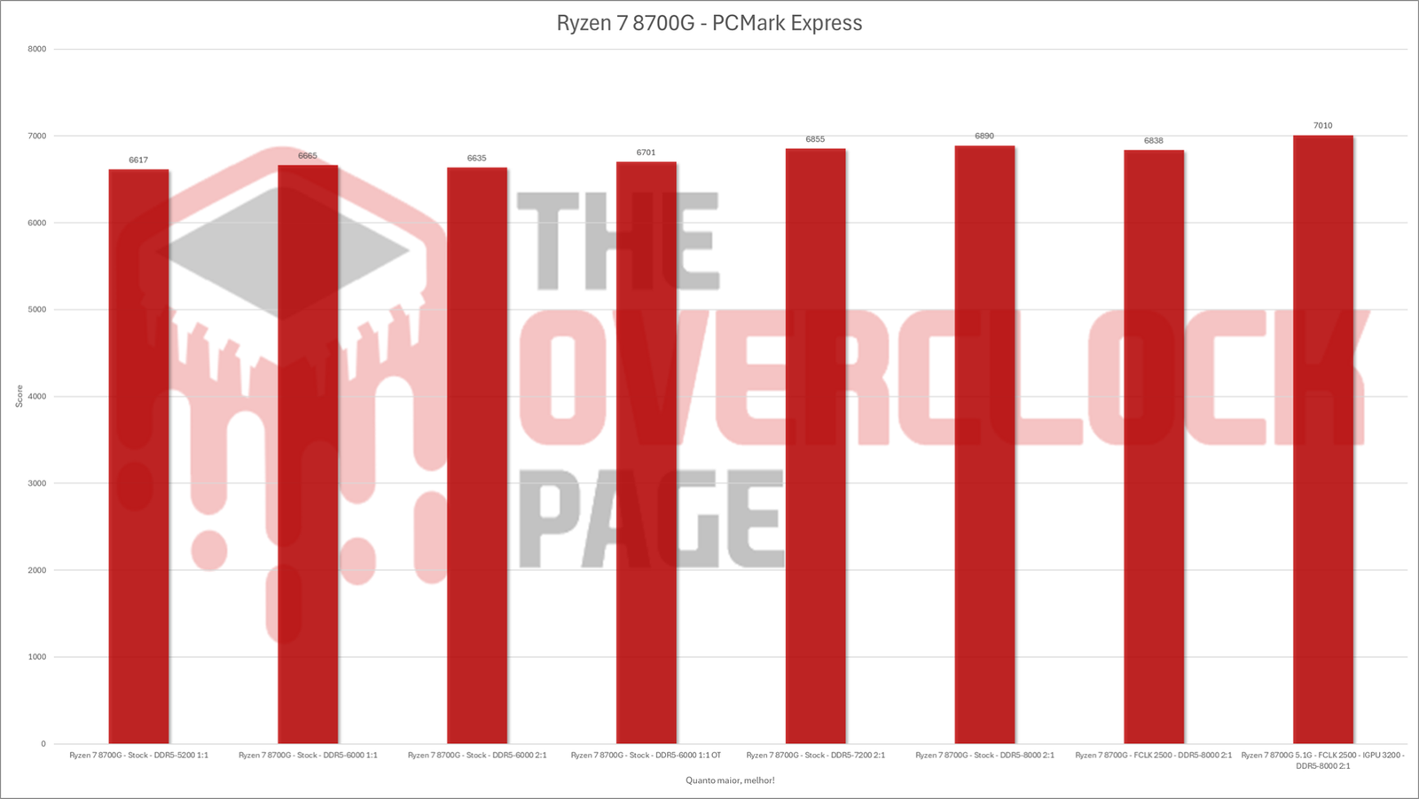 Aferir o desempenho do Ryzen 7 8700G em uma série de benchmarks, operando com diferentes frequências de memória, FCLK, IGPU e CPU, tudo para verificar o quanto essa APU escala com overclock com esses diferentes parâmetros. Maiores detalhes estão inclusos nos textos a seguir.