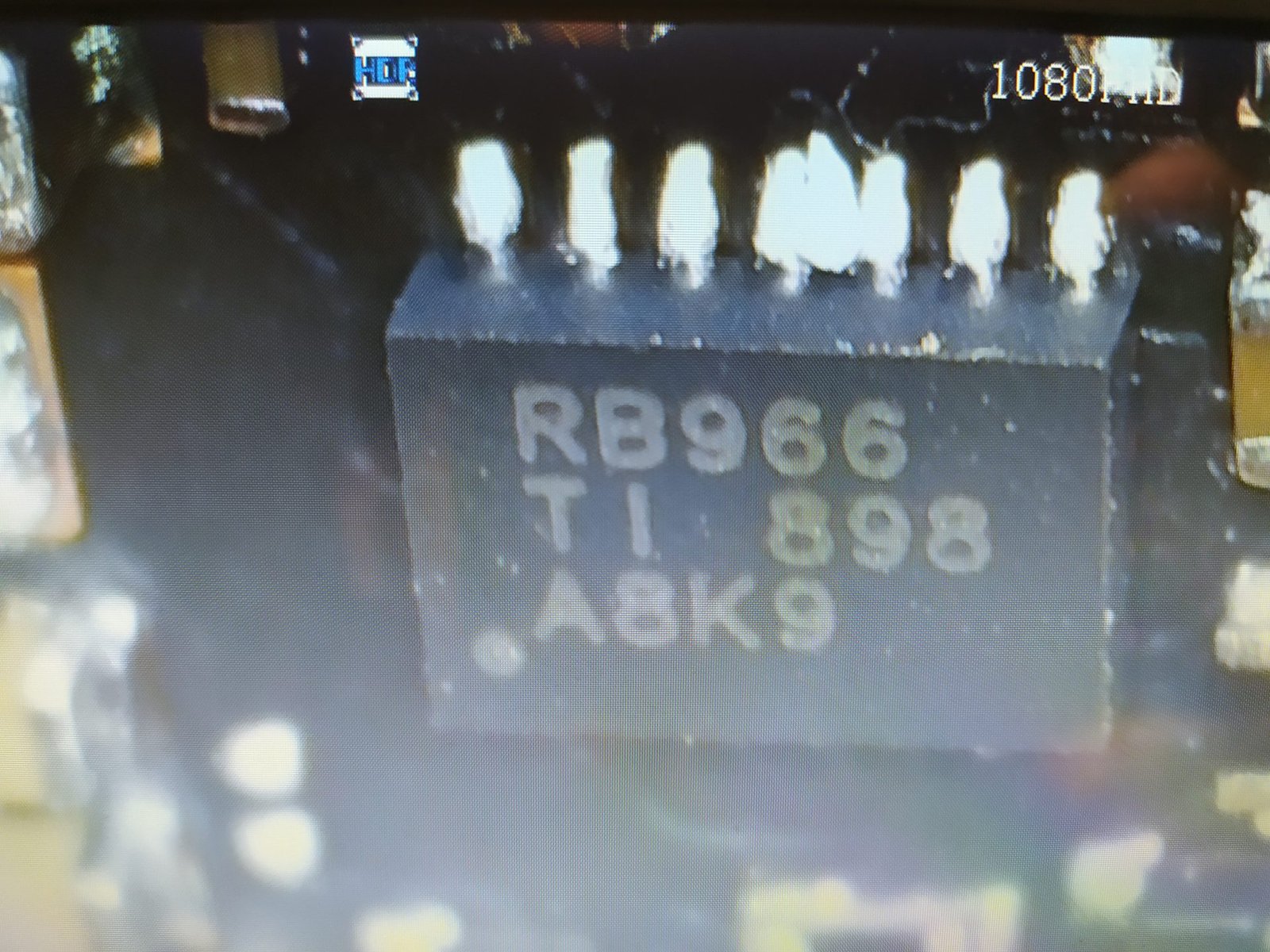 Já o componente na imagem do meio trata-se também de outro Load Switch, porém, é um de 2 canais também da Texas Instruments. No caso, sua marcação era “RB996 TI” que na verdade trata-se do TPS22966 da Texas Instruments.