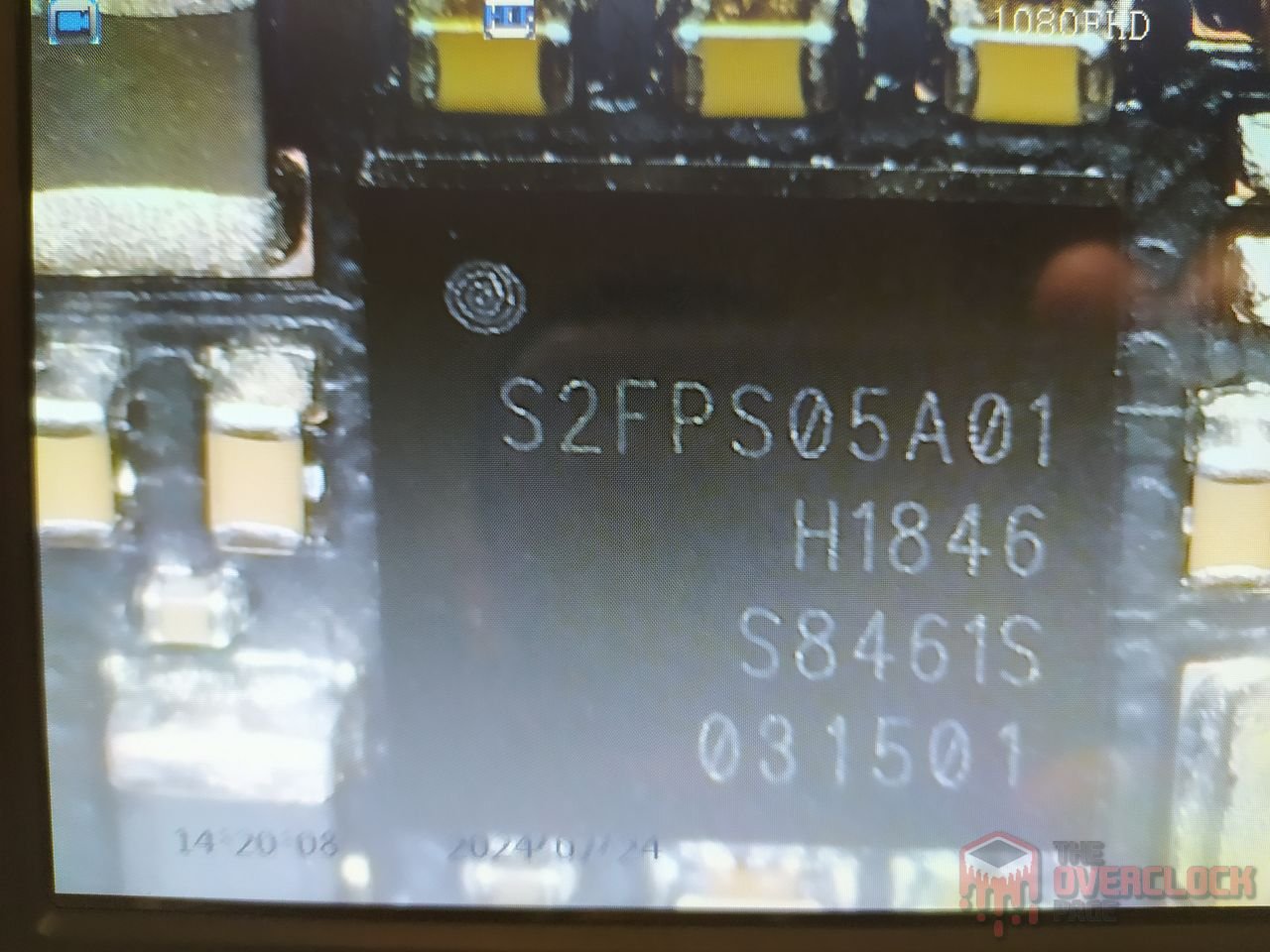 Vemos na imagem a direita o seu PMIC principal, que tem como marcação S2FPS05A01 que pode ser encontrado em diversos SSDs da Samsung, mas infelizmente, não foi possível encontrar um datasheet para este C.I.
