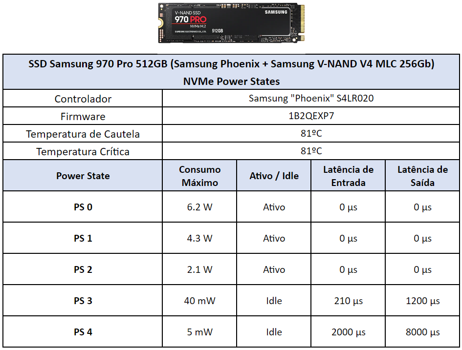 Como sempre mencionamos em análises sobre consumo de energia, neste trecho veremos mais sobre os estados de alimentação deste SSD.