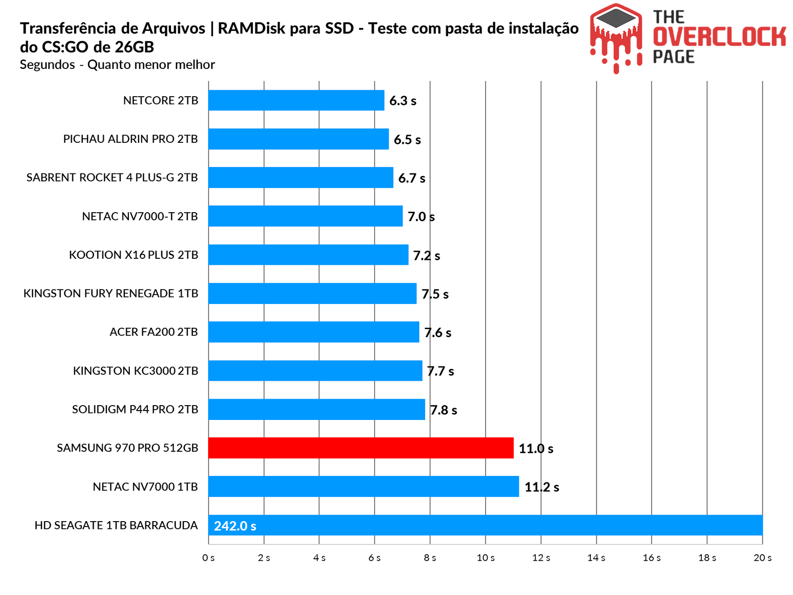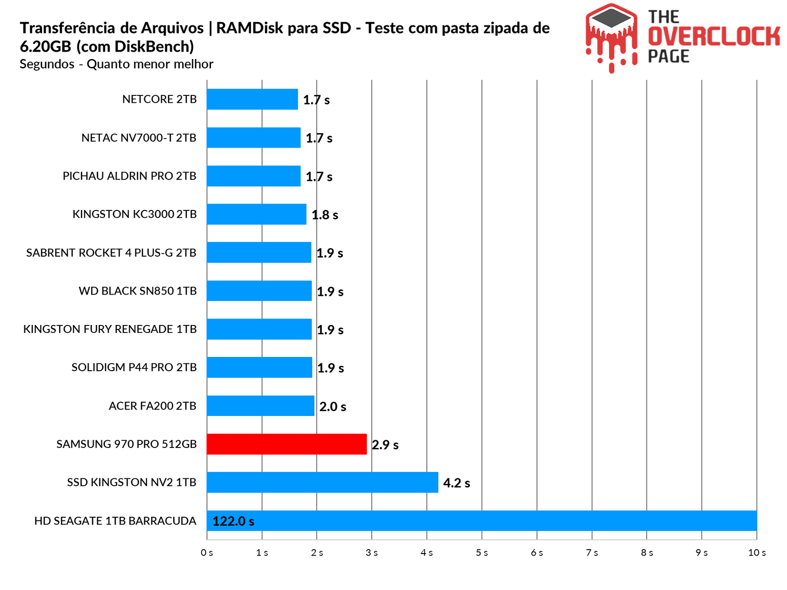 – SSD testado: SSD Samsung 970 Pro 512GB (Firmware: 1B2QEXP7)