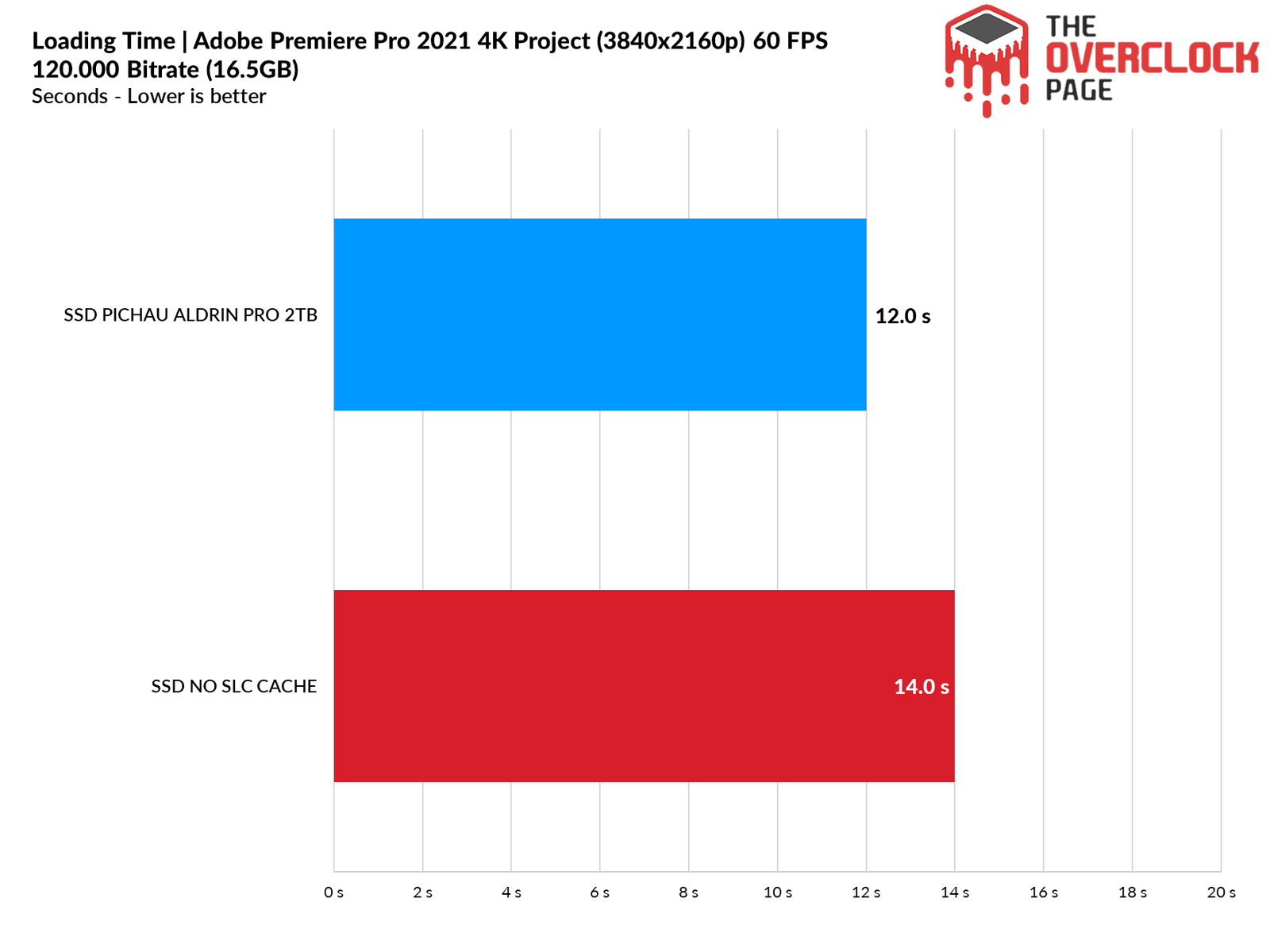 Next, we used Adobe Premiere to measure the average time it takes to open a 16.5GB project with 4K resolution, 120Mbps bitrate, and filled with effects, until it was ready for editing. It’s important to note that the tested SSD was always used as a secondary drive without the operating system installed, as this could affect the results and cause inconsistencies.