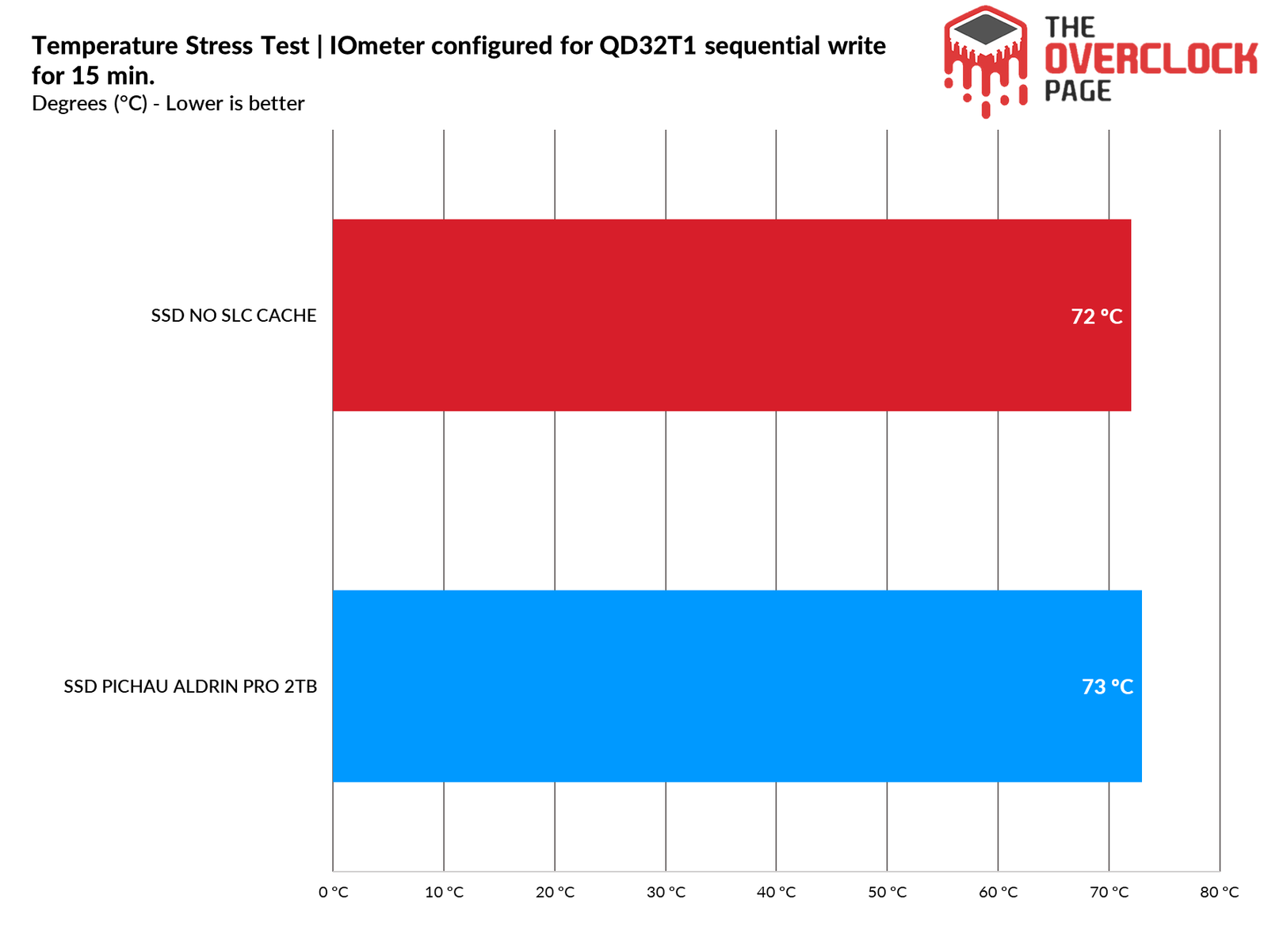 Regarding temperature, there was no difference; the SSD heated up in the same manner. What changed was the time it took to reach the maximum temperature. With the pSLC Cache activated, this maximum temperature is reached much more quickly due to its higher bandwidth.