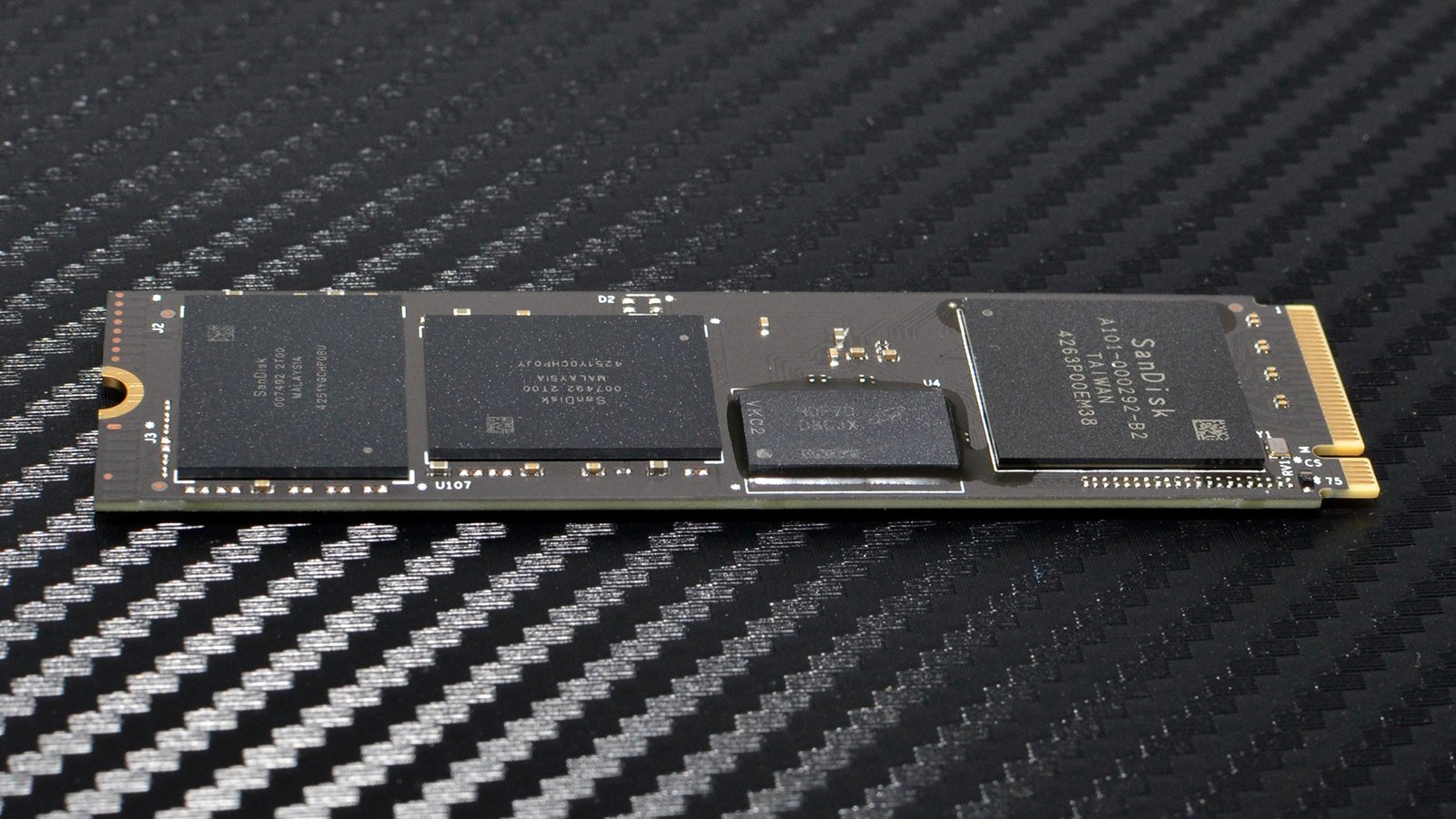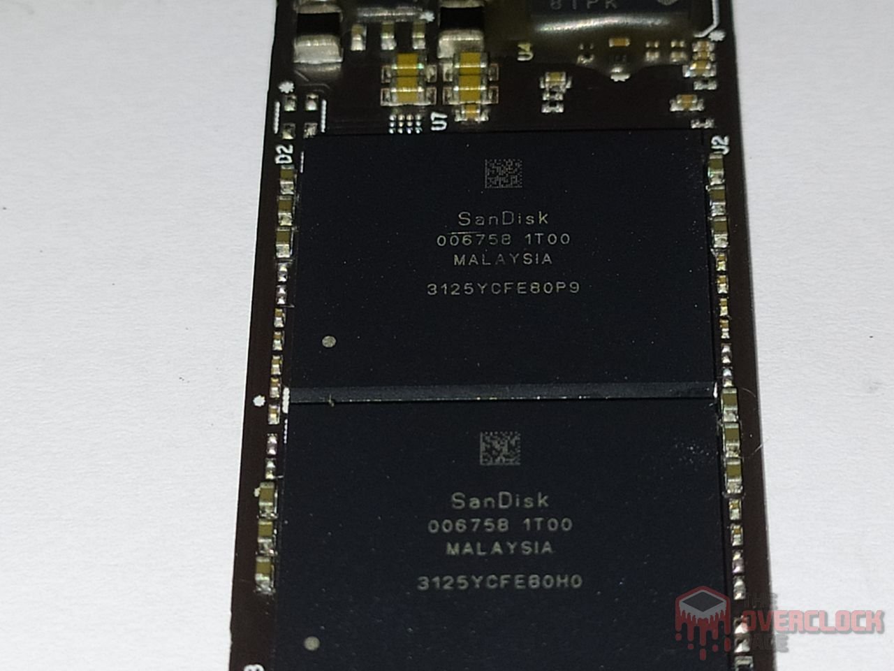 Com relação a suas NANDs, o SSD de 2TB possui 2 Nand flash marcadas como “SanDisk 006758 1T00”. Tratam-se de Nands da fabricante Japonesa Kioxia, mais conhecida antigamente como Toshiba memory, sendo neste caso dies Kioxia BiCS5 512Gb TLC (64GB) contendo 112-Layers de dados e um total de 128 gates, gerando uma array efficiency de 87.5%.