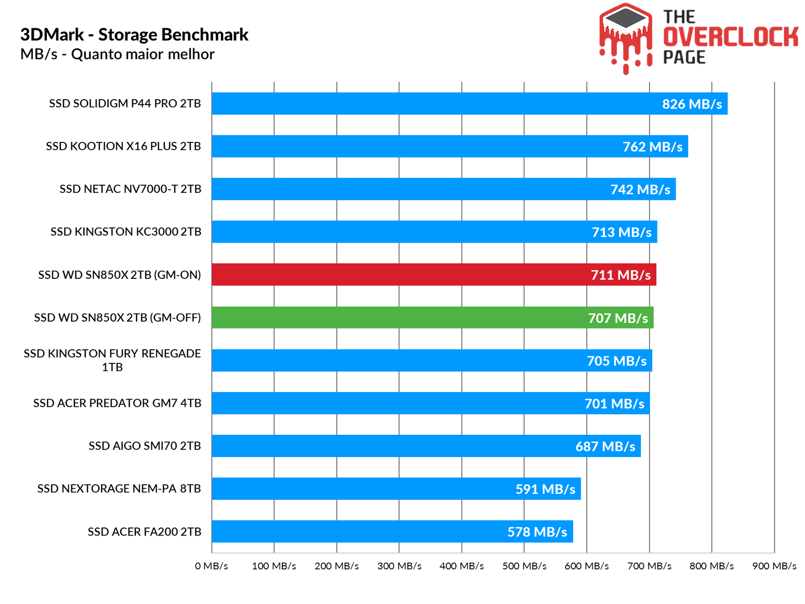 Como já haviamos feito na nossa análise anterior do antecessor deste SSD, o SN850, nós realizaremos múltiplos comparativos com esta nova versão do Game Mode 2.0, para que possamos constatar se de fato ele consegue trazer alguns benefícios em cenários realísticos, ou se é apenas algo teórico e que na prática, não trás muita diferença.