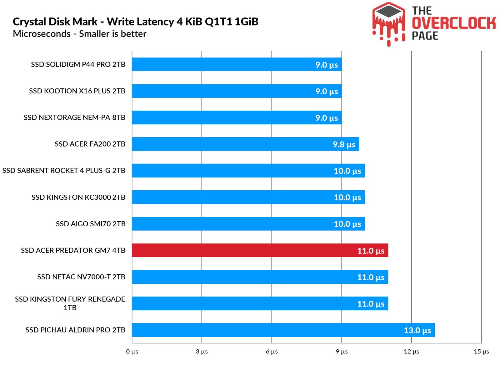 Its latencies also show excellent results, remaining similar to other SSDs with the MAP1602 controller that we have tested over the years.