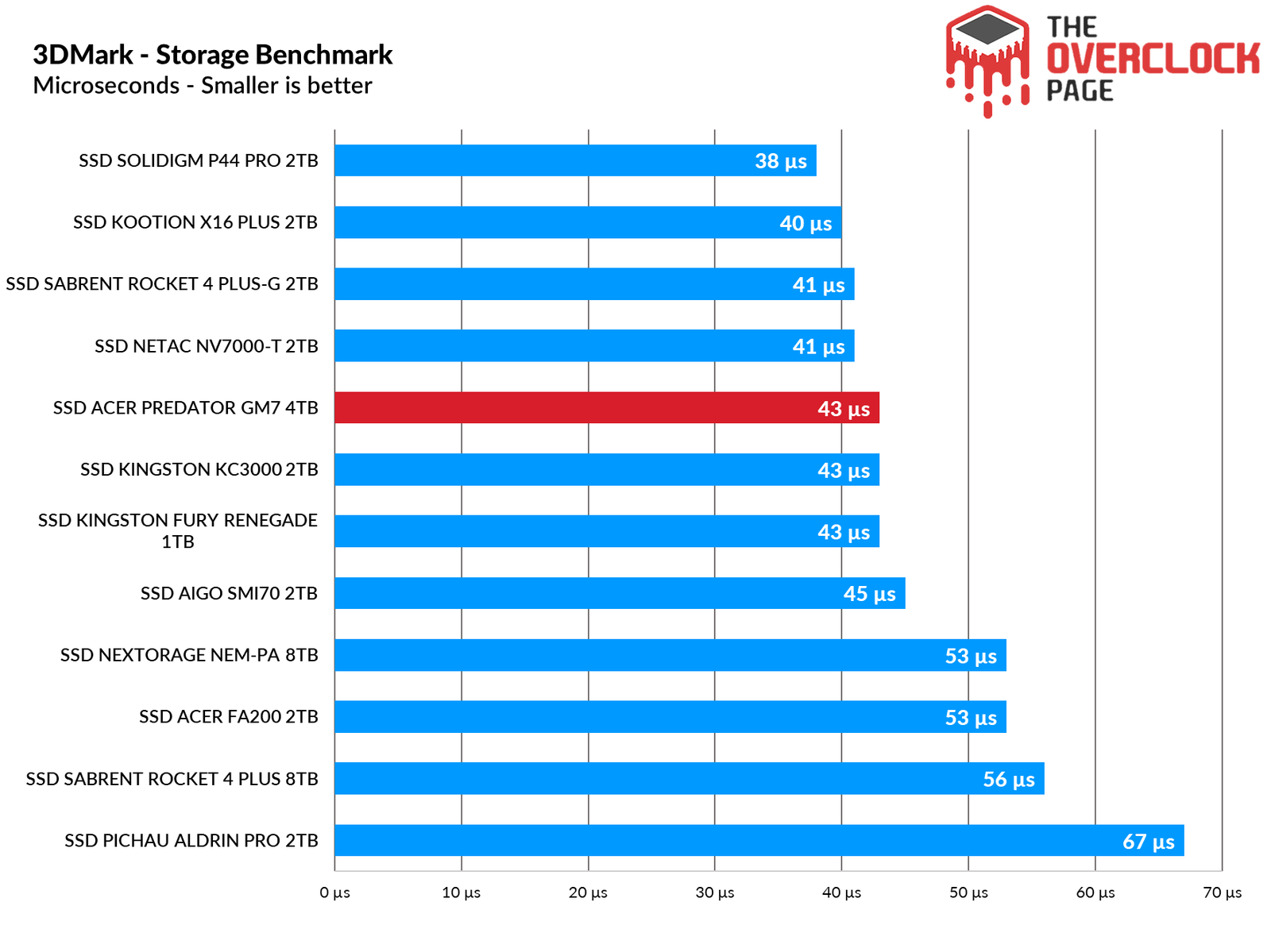 In this benchmark, which includes numerous realistic workloads for both work and everyday use, the GM7 performed on par with the Kingston KC3000, which we tested last year. This is quite an achievement, considering the Kingston SSD features an 8-channel controller with DRAM cache.